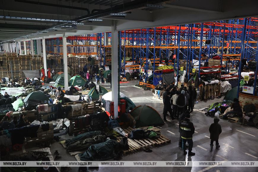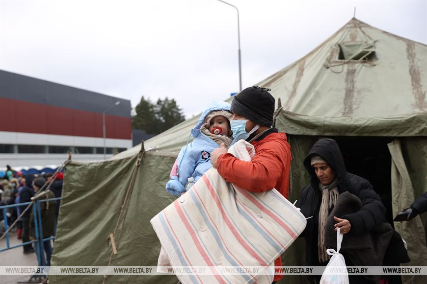 Центр временного размещения в ТЛЦ был создан по поручению Президента Беларуси. У беженцев есть все необходимое. Белорусская сторона делает все возможное, чтобы обеспечить их теплыми вещами и едой. В доставке предметов первой необходимости беженцам помогают не только органы власти, но и общественные организации, неравнодушные белорусы. -0-