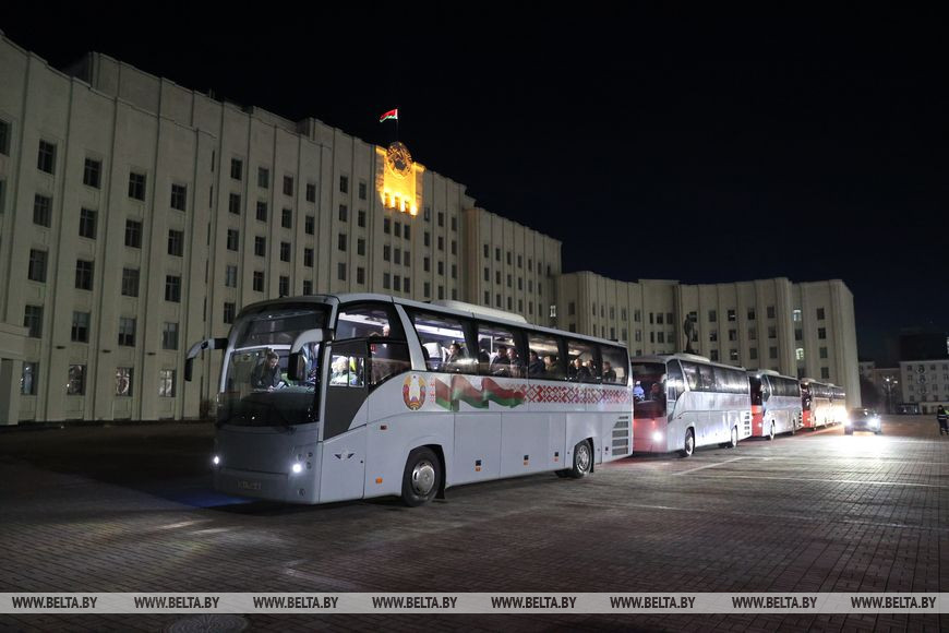 31 марта, Минск /Корр. БЕЛТА/. Делегации из всех регионов республики, в том числе из Могилевской и Гродненской областей, отправились в Минск во Дворец Республики, где Президент обратится с ежегодным Посланием к белорусскому народу и парламенту.
