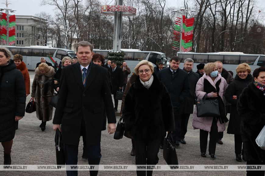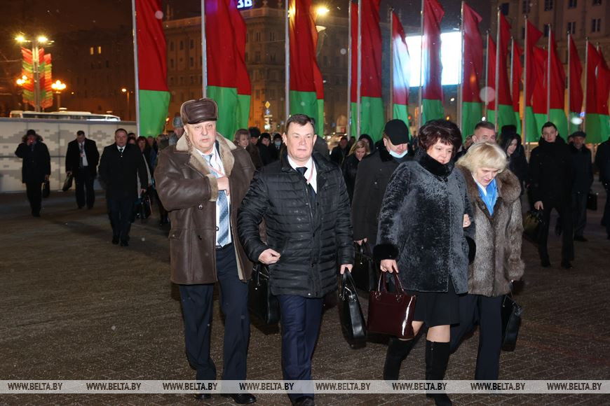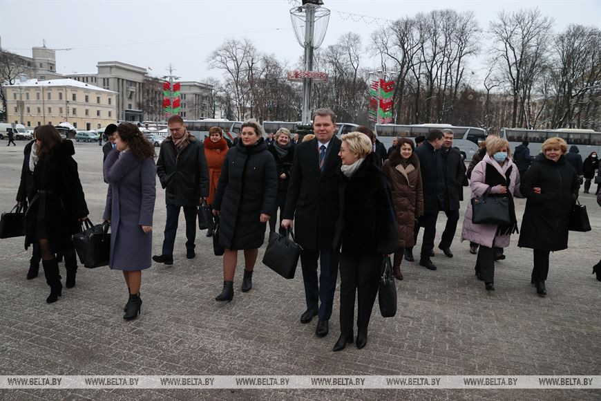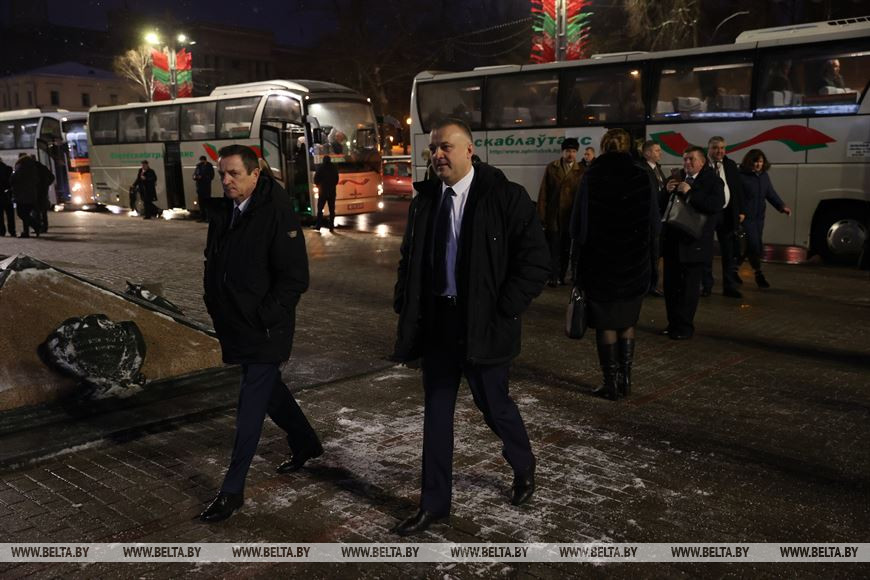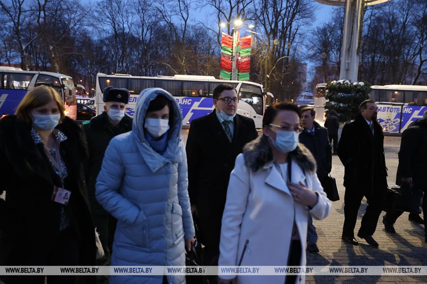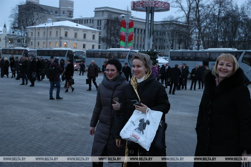 11 февраля, Минск /Корр. БЕЛТА/. Делегаты VI Всебелорусского народного собрания уже прибывают во Дворец Республики. В этом году на делегатами выбраны 2,4 тыс. человек. С учетом приглашенных количество участников ВНС достигает 2,7 тыс. Традиционно это представители всех слоев общества и регионов.-0-