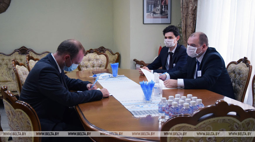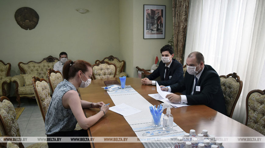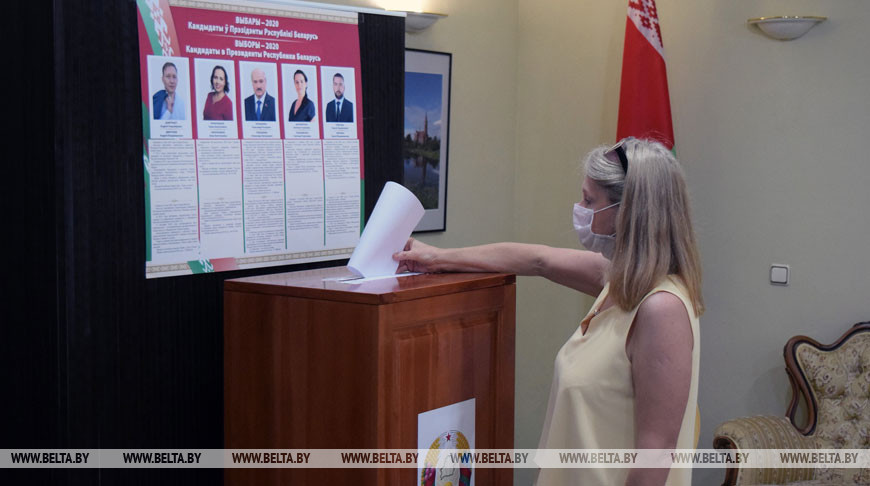 9 августа, Минск /Корр. БЕЛТА/. Белорусы голосуют на избирательном участке в Посольстве Беларуси в Болгарии. За пределами Беларуси образовано 44 участка для голосования.