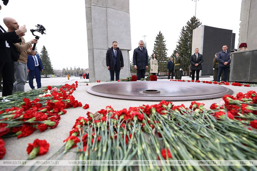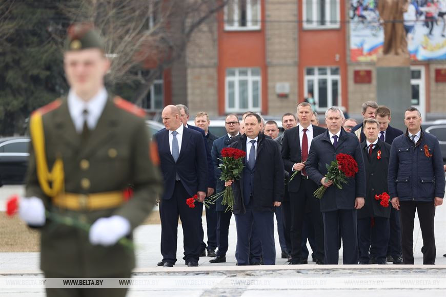 27 апреля, Минск /Корр. БЕЛТА/. Во время рабочего визита в Новосибирск премьер-министр Беларуси Роман Головченко возложил цветы к Монументу славы в честь подвига сибиряков в годы Великой Отечественной войны.-0-