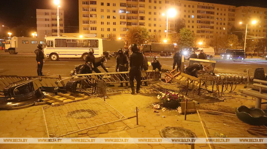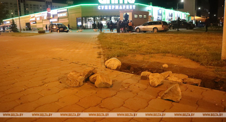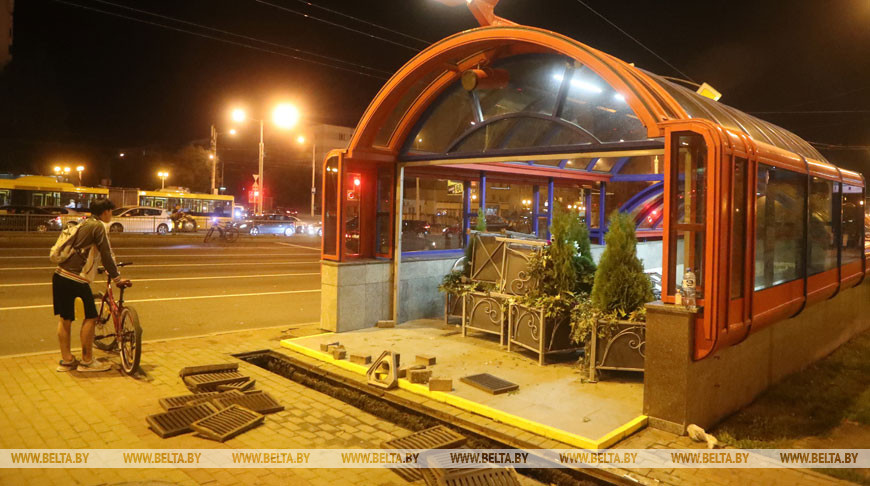 12 августа, Минск /Корр. БЕЛТА/. Протестующие в Минске устроили массовые беспорядки. Во время несанкционированных акций пытались строить баррикады из мусорных контейнеров, портили скамейки, клумбы, пускали в ход камни. Участники беспорядков били стекла, бросая бутылки, разрисовывали фасады. Последствия уличных протестов в фотоподборке.