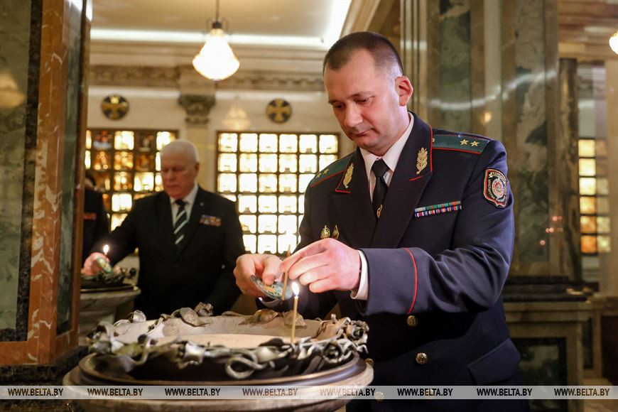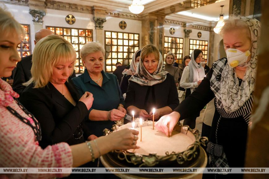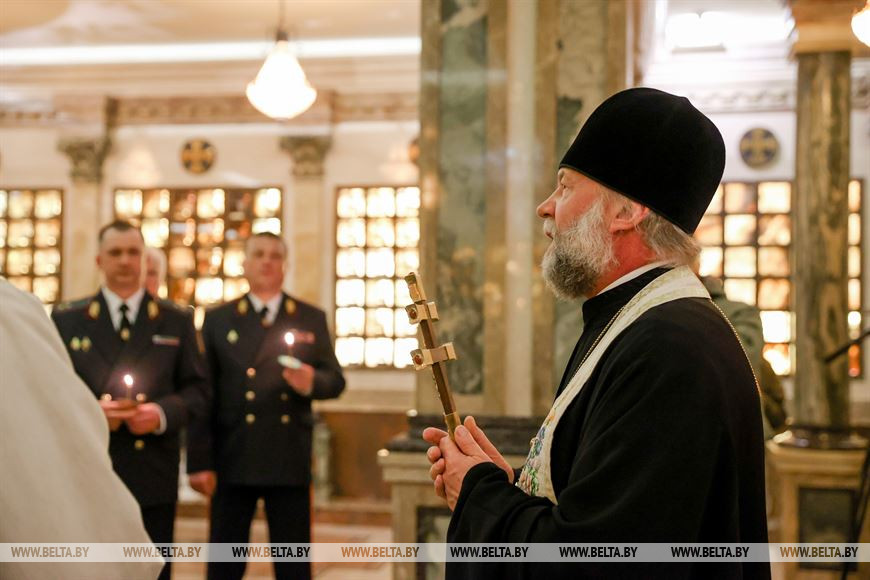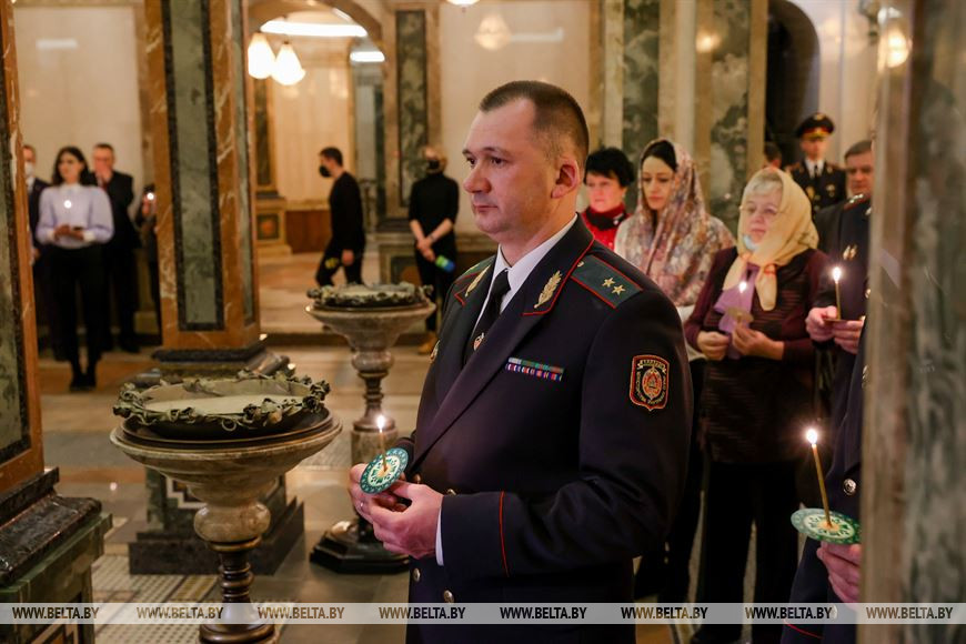 3 марта, Минск /Корр. БЕЛТА/. Молебен о погибших сотрудниках МВД прошел 3 марта в крипте храма-памятника в честь Всех Святых. Министр внутренних дел Иван Кубраков встретился с родственниками погибших сотрудников МВД.-0-