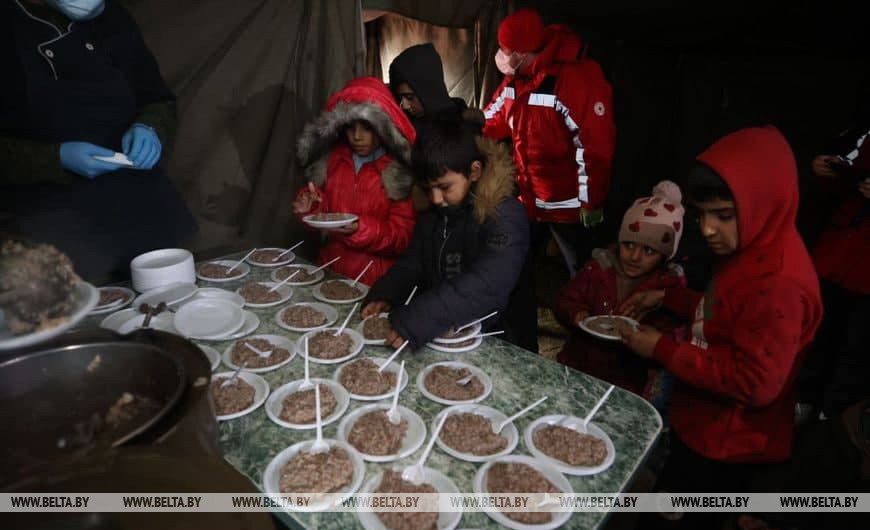 Здесь находятся около 2 тыс. беженцев. Центр временного размещения в ТЛЦ был создан по поручению Президента Беларуси. Людям, застрявшим на границе с Польшей, ежедневно доставляют около 8 тонн продуктов. У беженцев есть все необходимое. Белорусская сторона делает все возможное, чтобы обеспечить их теплыми вещами и едой. В доставке предметов первой необходимости беженцам помогают не только органы власти, но и общественные организации, неравнодушные белорусы.-0-
