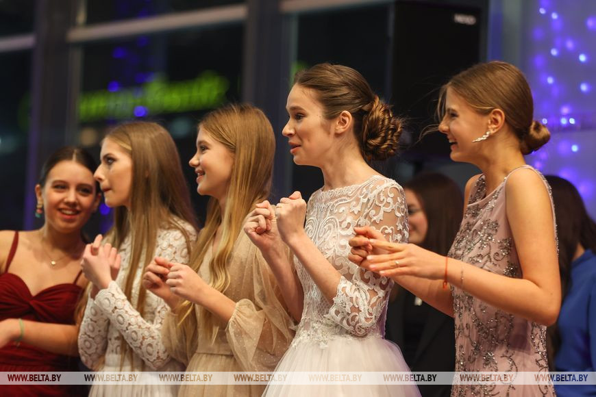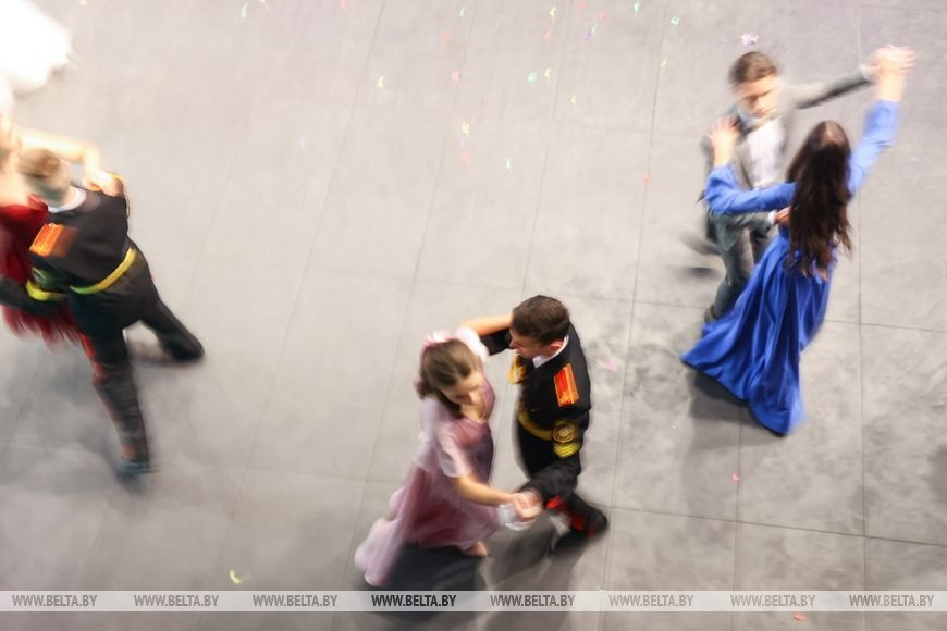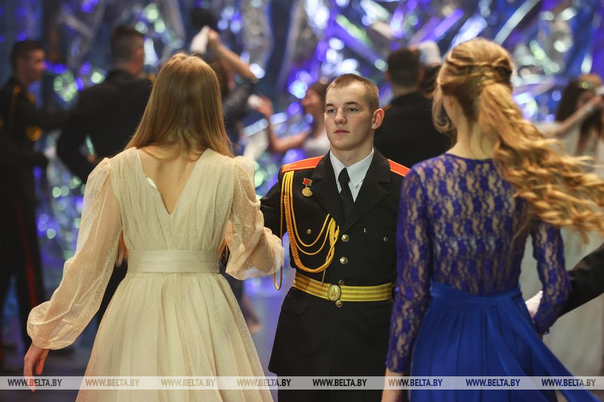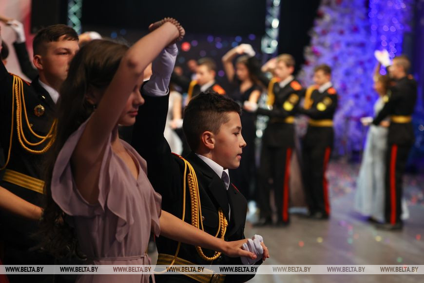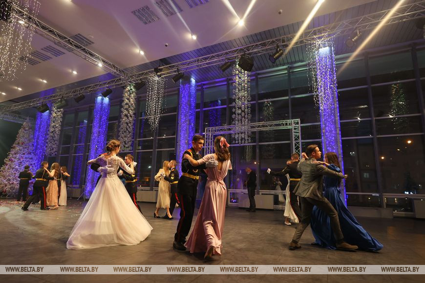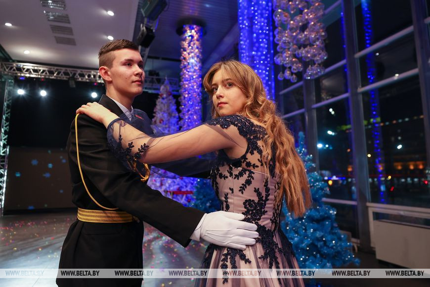 22 декабря, Минск /Корр. БЕЛТА/. Новогодний бал прошел в Национальной школе красоты. Его участниками стали модели-подростки и учащиеся Лицея МВД. К праздничному событию молодые люди подошли основательно: около месяца оттачивали па и реверансы, готовили к выходу парадный китель, подыскивали вечерние наряды, репетировали движения для флешмоба. Под звуки классической музыки парни и девушки исполнят вальс и падеспань.-0-