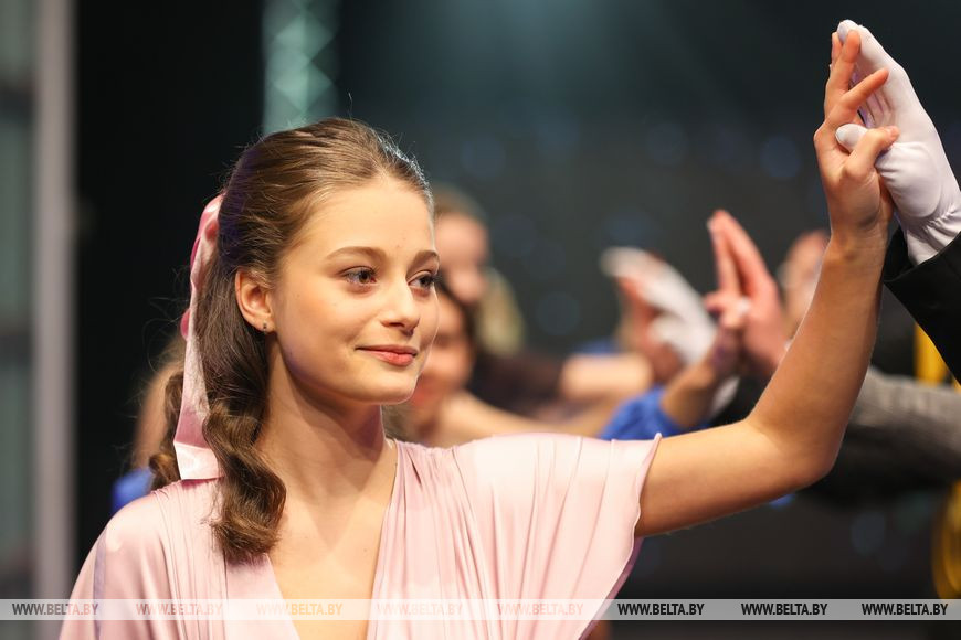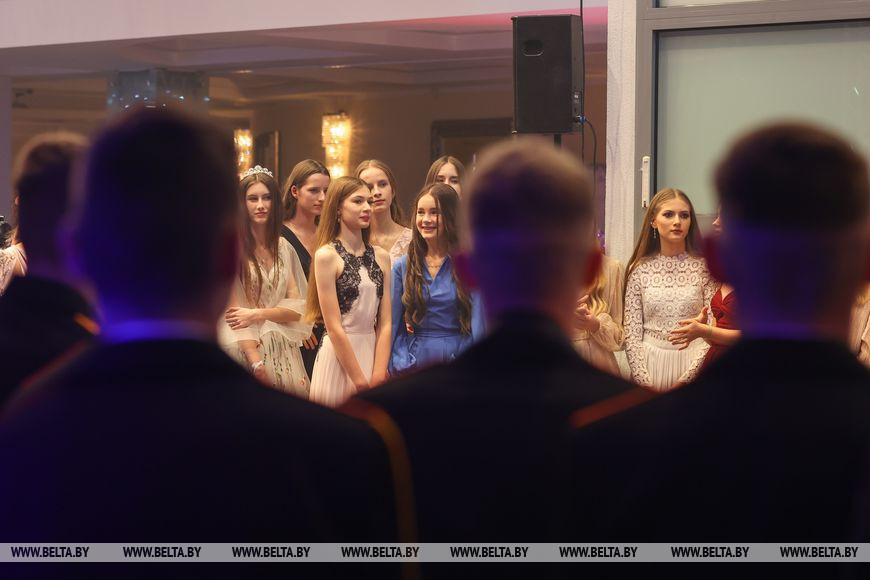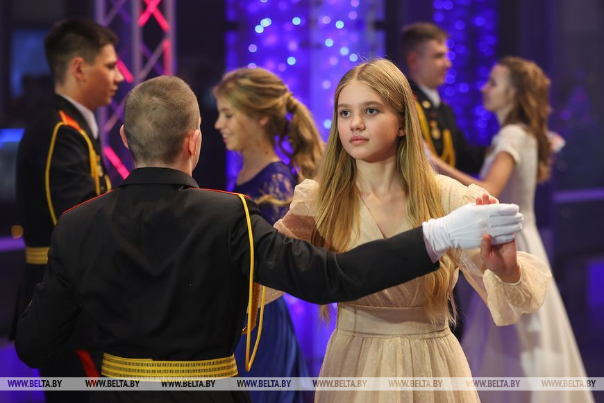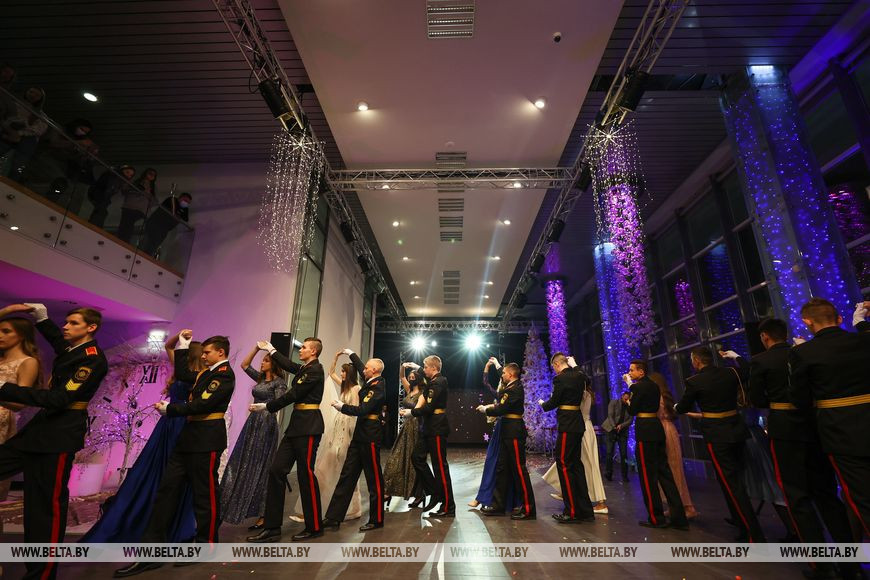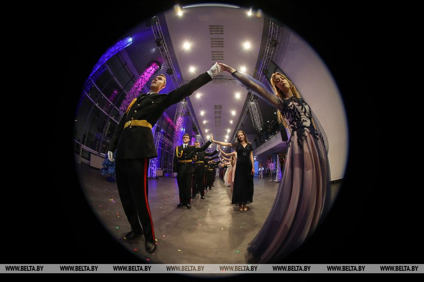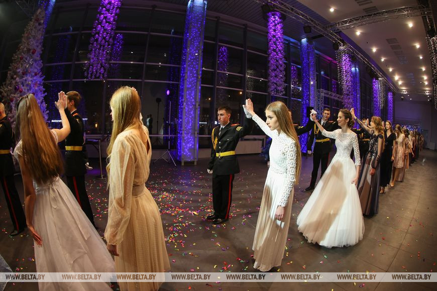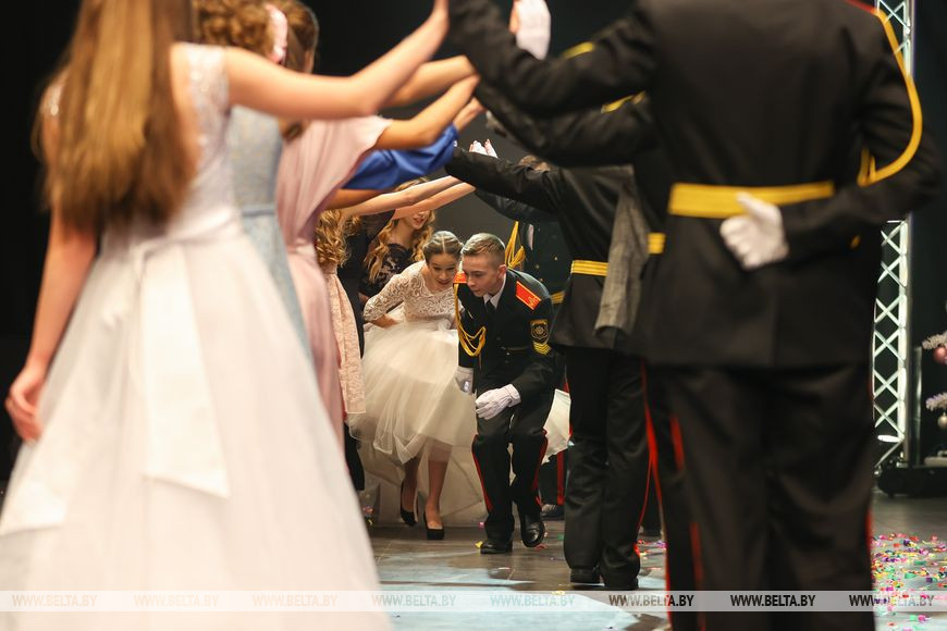 22 декабря, Минск /Корр. БЕЛТА/. Новогодний бал прошел в Национальной школе красоты. Его участниками стали модели-подростки и учащиеся Лицея МВД. К праздничному событию молодые люди подошли основательно: около месяца оттачивали па и реверансы, готовили к выходу парадный китель, подыскивали вечерние наряды, репетировали движения для флешмоба. Под звуки классической музыки парни и девушки исполнят вальс и падеспань.-0-