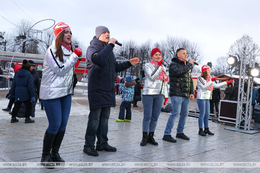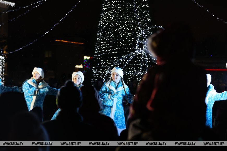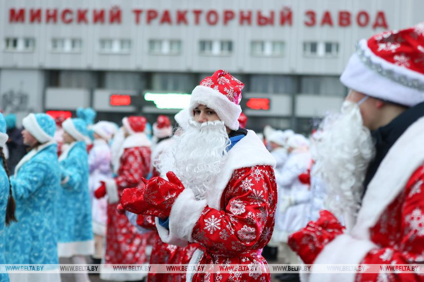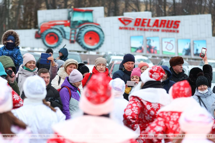 25 декабря, Минск /Корр. БЕЛТА/. Большой новогодний праздник состоялся на площади у Минского тракторного завода. Интерактивное шоу Дедов Морозов и Снегурочек собрало в едином хороводе более 70 сказочных персонажей. Перед гостями праздника выступили артисты Дворца культуры МТЗ и победители заводского конкурса талантов "Пой, BELARUS!", а также популярные белорусские исполнители. Также было представлено неоново-пиксельное шоу со световой визуализацией.-0-
