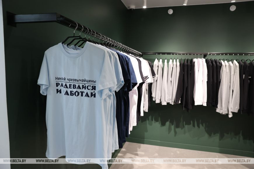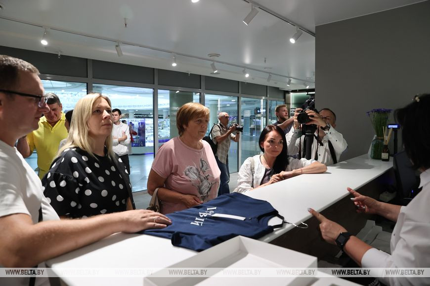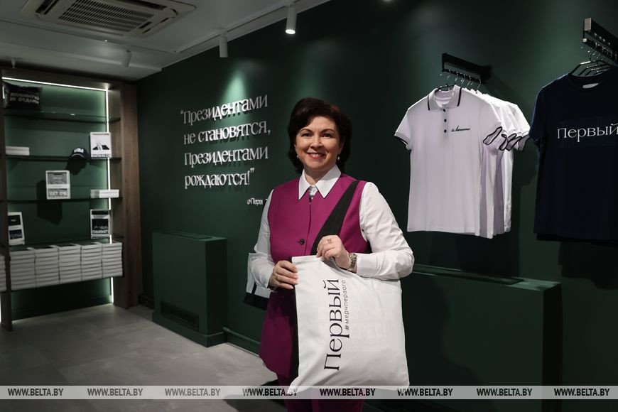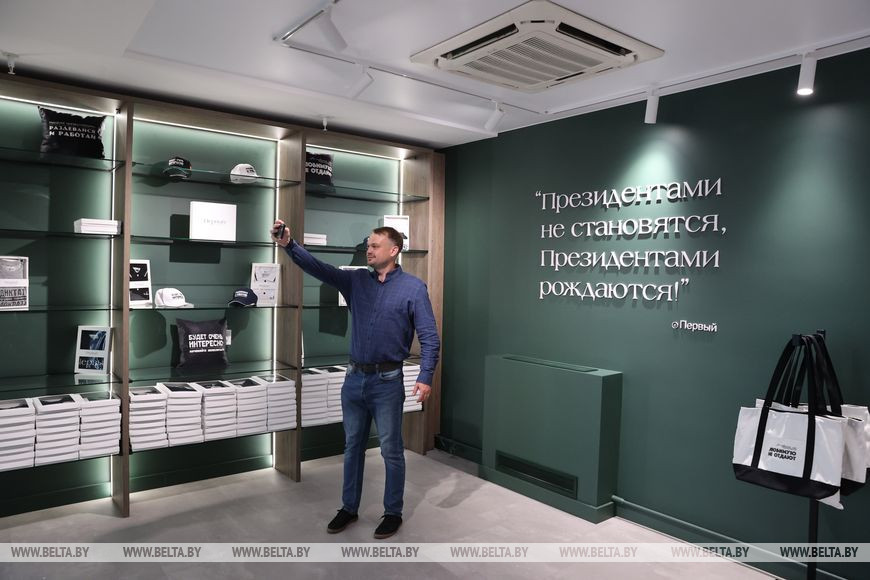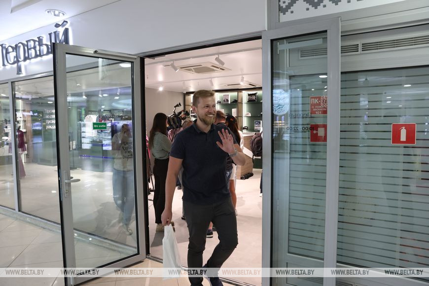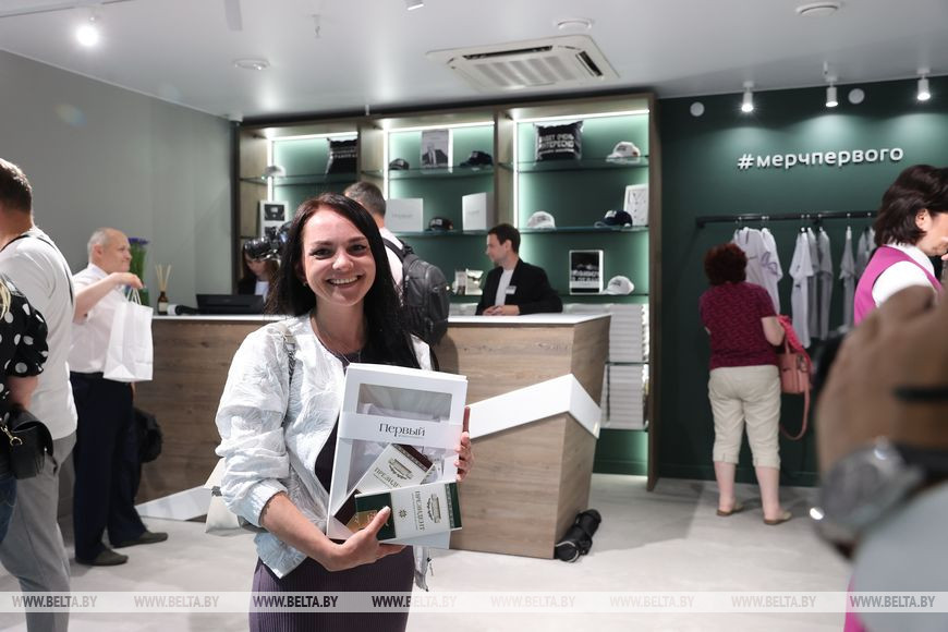 9 июля, Минск /Корр. БЕЛТА/. Новый магазин мерча "Первый" открылся сегодня в ТЦ "Столица". Первые покупатели уже выбирают обновки.-0-