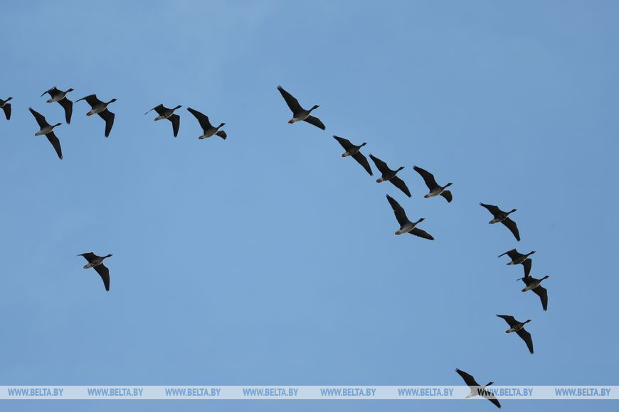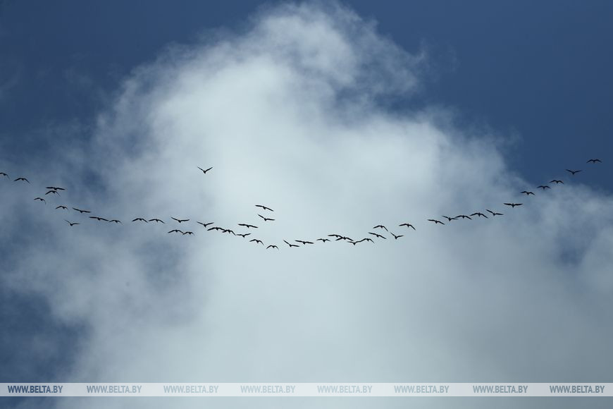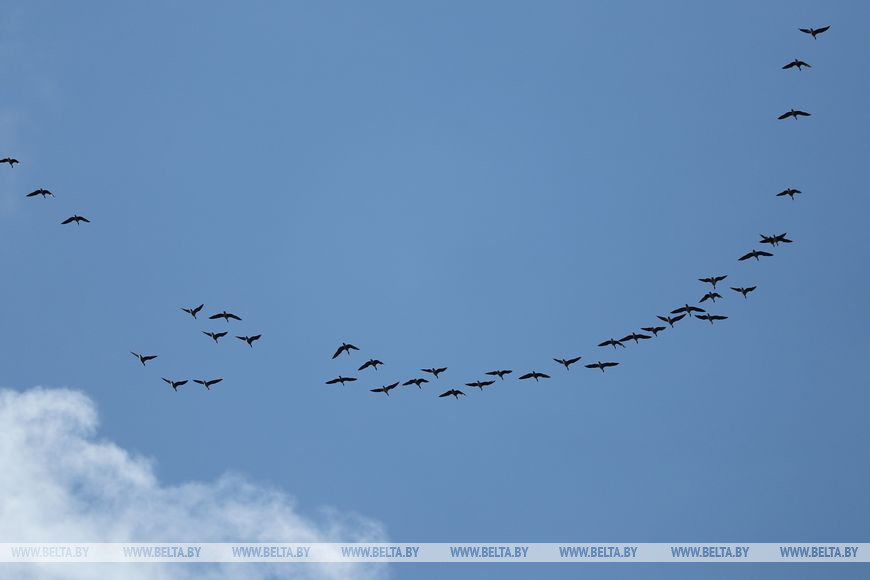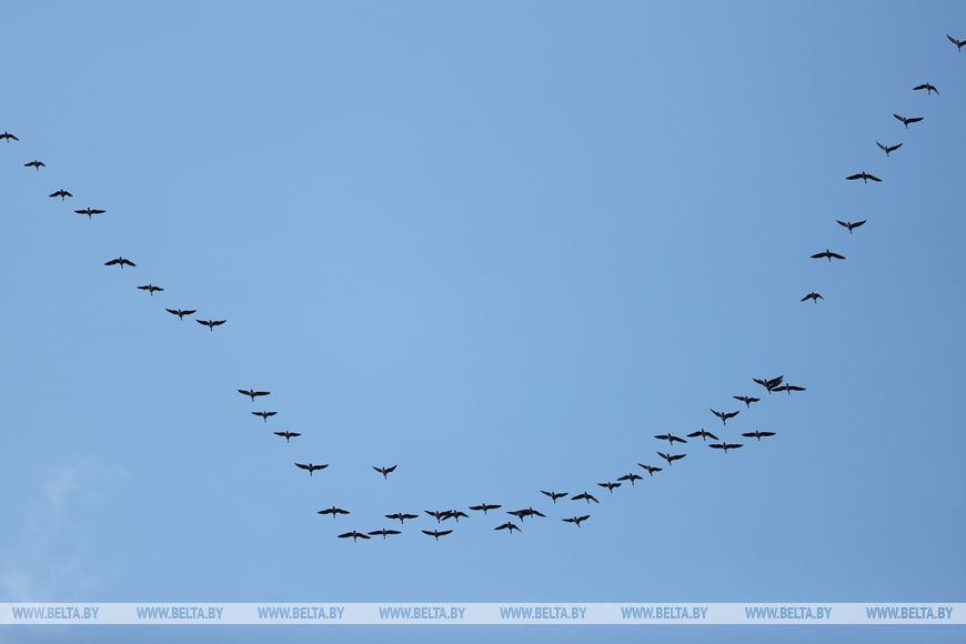 8 октября, Гродно /Корр. БЕЛТА/. Гусиный клин отправляется на зимовку в теплые страны. В народе считают, что гусь - птица, следующая за солнцем. Весной вместе со стаей возвращается тепло, а осенью после отлета птиц приходят холода.-0-