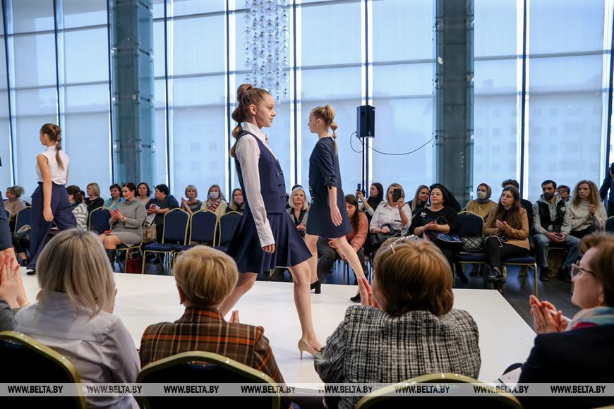 7 апреля, Минск /Корр. БЕЛТА/. В Национальной школе красоты концерн "Беллегпром" провел показ-презентацию школьной формы 2022-2023.-0-