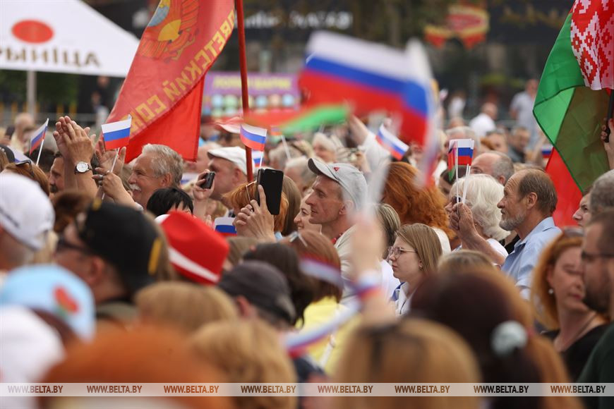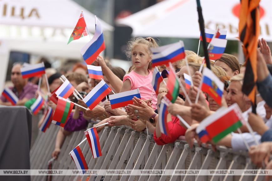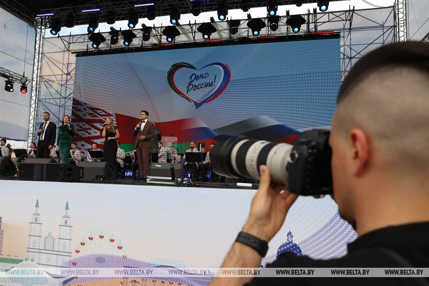 9 июня, Минск /Корр. БЕЛТА/. Праздничный концерт, посвященный Дню России, проходит в Минске. В мероприятии принимают участие звезды белоруской и российской сцены: группа "Любэ", ансамбль "Сябры", Денис Майданов, Дмитрий Маликов, Зара, Василий Герелло и другие исполнители.-0-