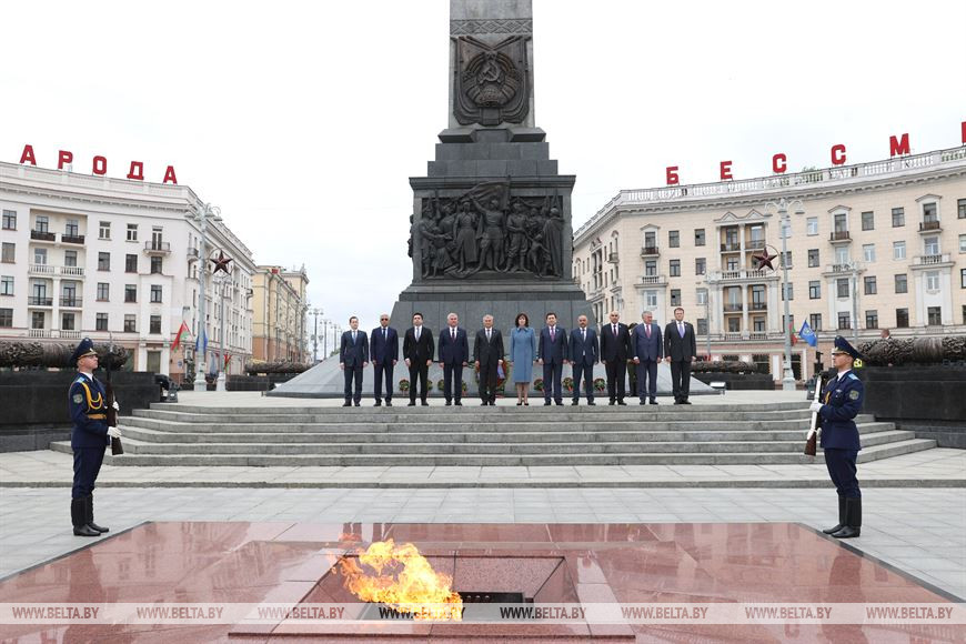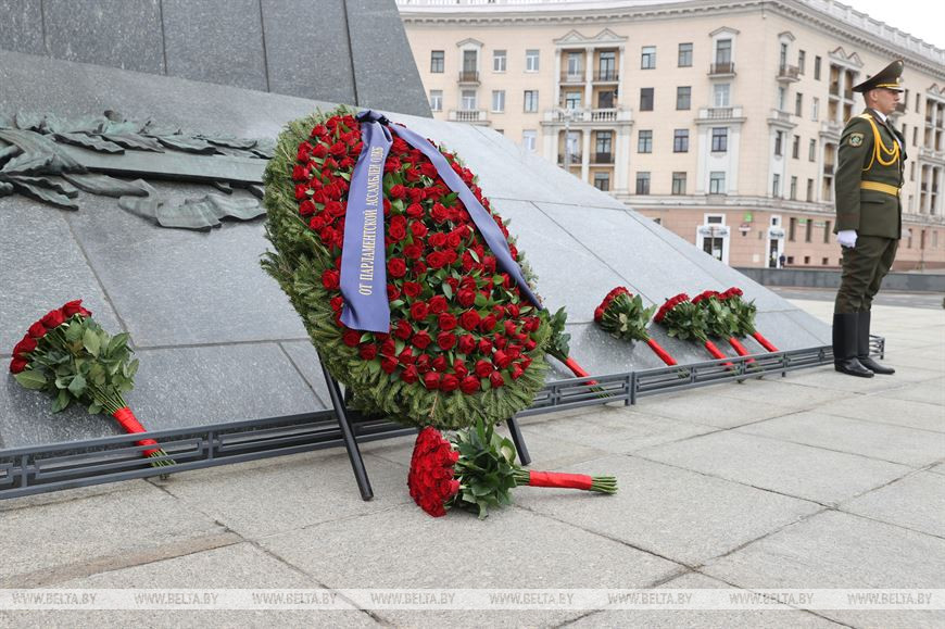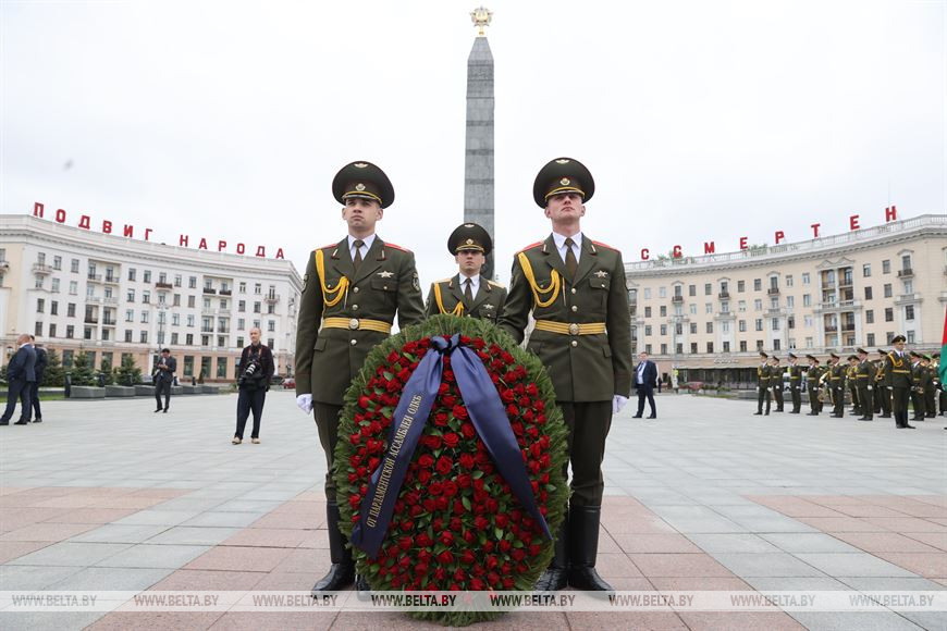 18 мая, Минск /Корр. БЕЛТА/. Члены Совета Парламентской ассамблеи ОДКБ приняли участие в церемонии возложения венка к монументу Победы. -0-