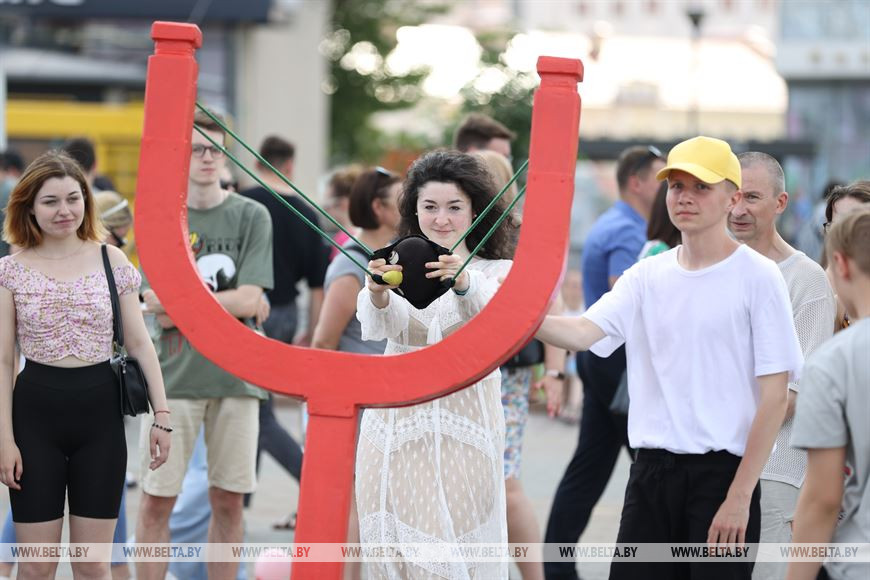 26 июня, Минск /Корр. БЕЛТА/. Республиканский молодежный проект "Moladz.by: помним традиции, живем настоящим, стремимся в будущее" проходит у Дворца спорта в Минске.-0-