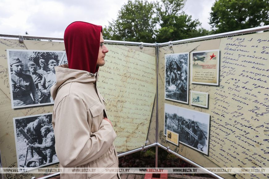 21 июня, Брест /Корр. БЕЛТА/. Фотовыставка "Судьбы, сложенные в треугольник" основана на одноименном совместном интернет-проекте БЕЛТА и Белорусского государственного музея истории Великой Отечественной войны. Проект рассказывает о судьбах погибших и тех, кто прошел всю войну, прославленных и самых обычных - через подлинные личные письма периода Великой Отечественной войны, почтовые карточки, открытки, отправленные с огневых рубежей родным, архивные фотоснимки.-0-