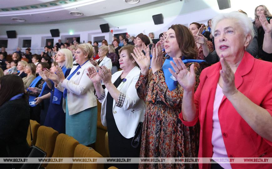 4 декабря, Минск /Корр.БЕЛТА/. Торжественное мероприятие, посвященное 30-летию со дня образования общественного объединения "Белорусский союз женщин", 4 декабря состоялось во Дворце Республики с участием представительниц БСЖ со всех регионов страны. В мероприятии также приняли участие председатель Совета Республики Наталья Кочанова, заместитель премьер-министра Игорь Петришенко, помощник Президента Беларуси по вопросам развития финансово-кредитной системы Валерий Бельский, председатель Белорусского союза женщин, председатель комитета по здравоохранению Мингорисполкома Елена Богдан, министр информации Владимир Перцов, министр здравоохранения Дмитрий Пиневич и другие руководители министерств и ведомств, общественных организаций страны. Во время встречи состоялось награждение и чествование лучших представительниц БСЖ, руководителей структурных подразделений, ветеранов женского движения, а также победителей республиканского конкурса на лучшее освещение в СМИ деятельности Белорусского союза женщин. -0-