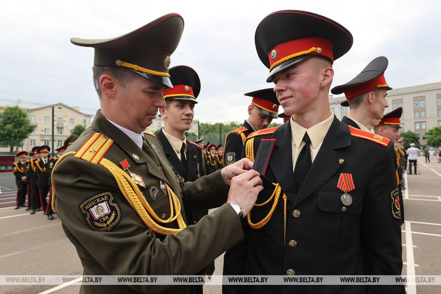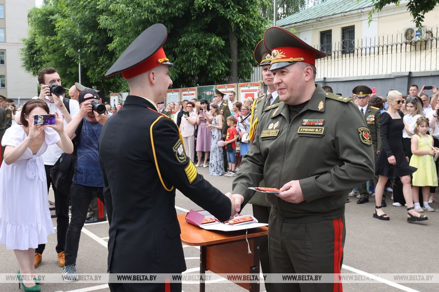 10 июня, Минск /Корр. БЕЛТА/. В Минском суворовском военном училище 9 июня 2023 года состоялись торжественные мероприятия по случаю 67-го выпуска суворовцев. В событии принял участие министр обороны Республики Беларусь Виктор Хренин.-0-