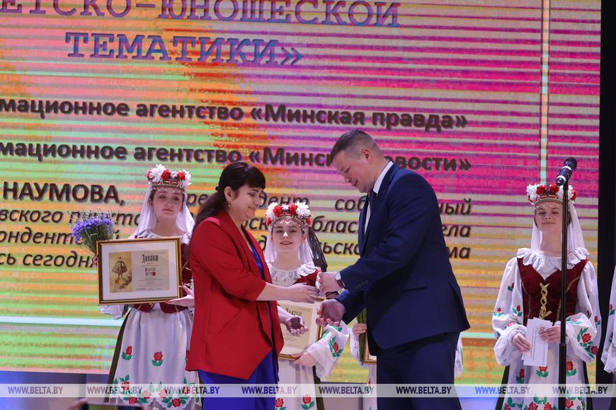 Победители в номинации "Лучшие материалы молодежной, детско-юношеской тематики"-Анна Наумова, собкор по Витебской области (издательский дом "Беларусь сегодня"), информационное агенство "Минск-Новости".