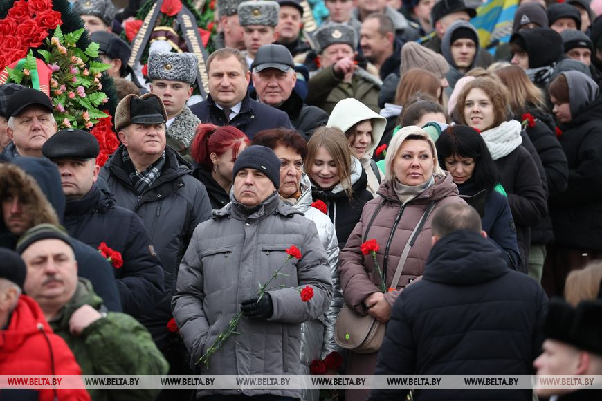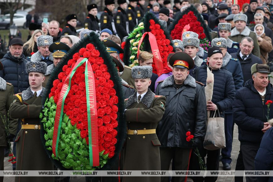 В торжественном возложении цветов к мемориалу "Остров Мужества и Скорби" и последующем митинге поучаствовали ветераны войны в Афганистане, матери и жены погибших воинов-интернационалистов, представители государственных и общественных структур, молодежь. Среди участников и делегация сотрудников, которые сегодня проходят службу и работают в Генеральной прокуратуре, прокуратурах областей и города Минска, а ранее исполняли свой интернациональный долг. К слову, сейчас в органах прокуратуры работают 16 человек, выполнявших воинский долг в Афганистане и иных горячих точках, среди ветеранов органов прокуратуры девять воинов-интернационалистов. "Большое количество людей, пришедших на митинг, доказывает их небезразличие к судьбам воинов-афганцев", - подчеркнул председатель Белорусского союза ветеранов войны в Афганистане.