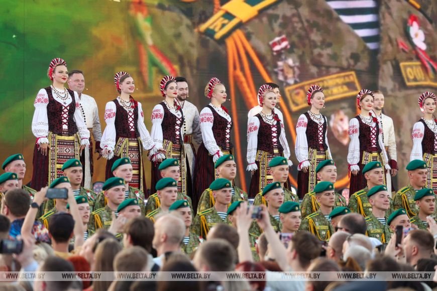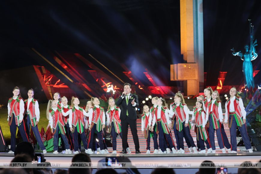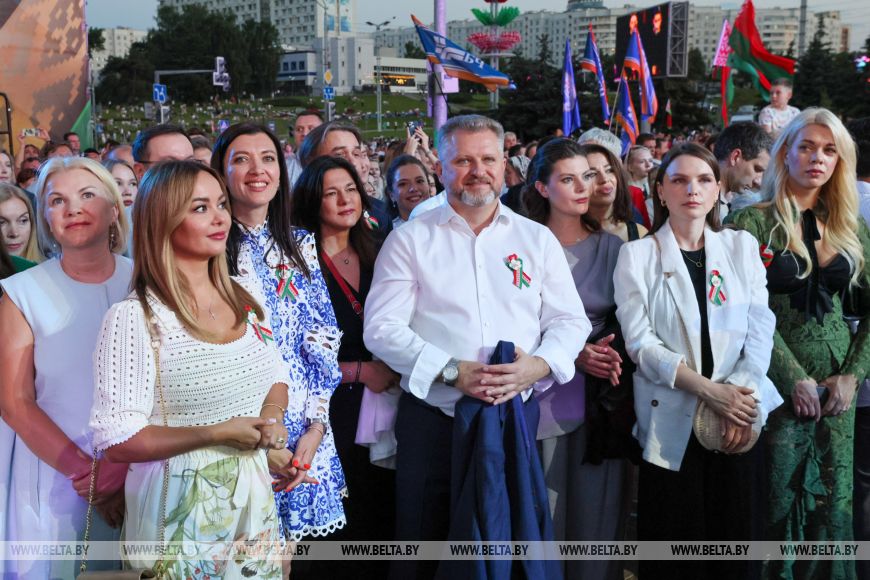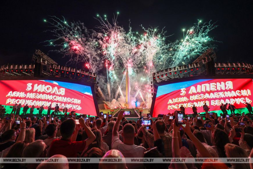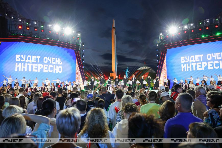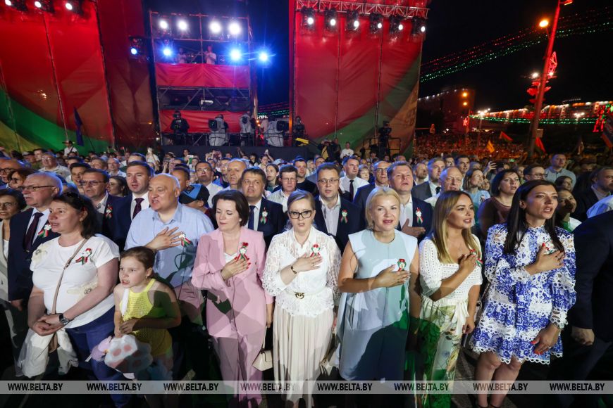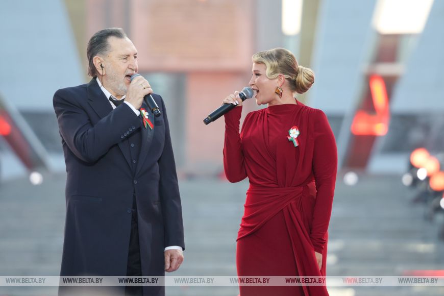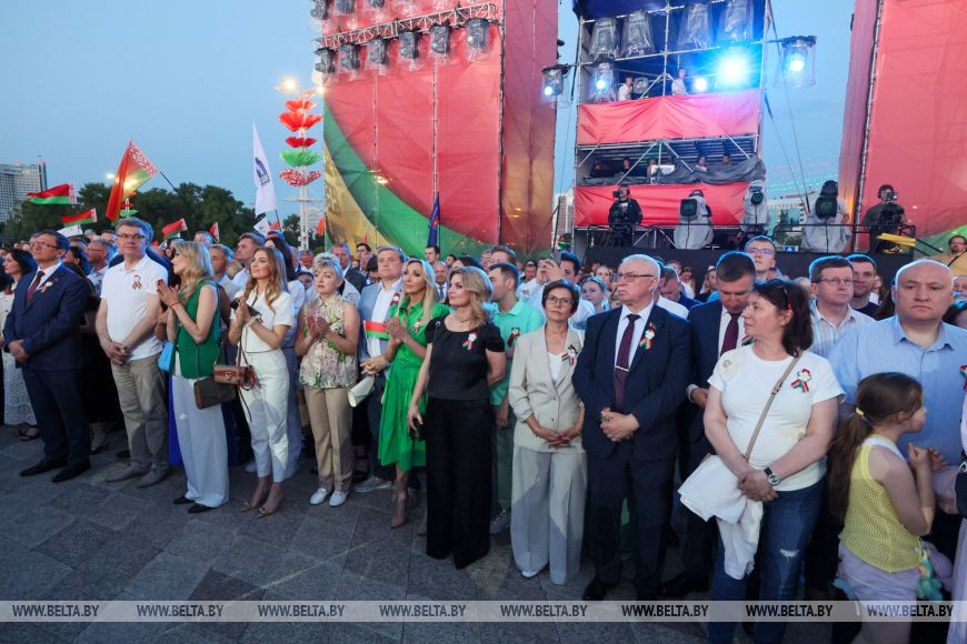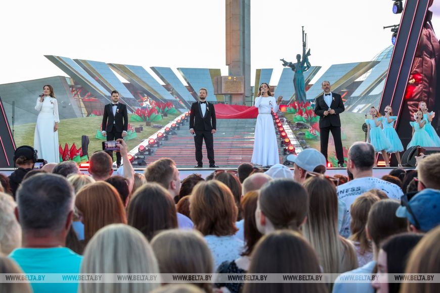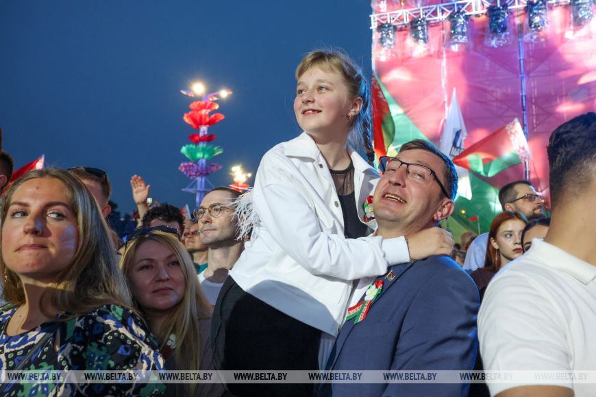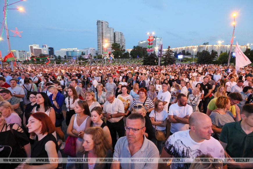 На сцену один за другим выходят известные белорусские артисты - их встречают бурными аплодисментами. Знакомые и любимые песни разливаются над площадью, наполняя вечер атмосферой единства, гордости за страну и настоящего праздничного подъема.