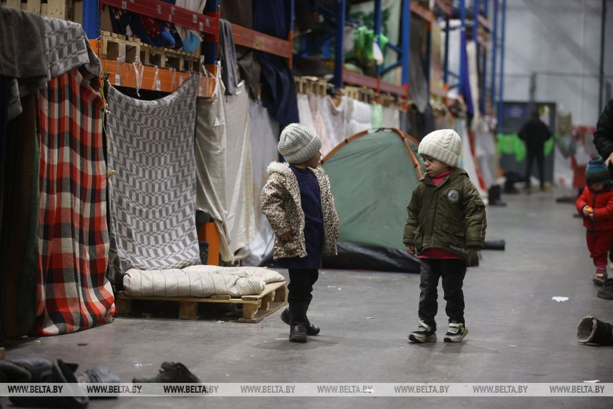 Сегодня для беженцев на границе идет 50-й день. Сейчас они находятся в пункте размещения в транспортно-логистическом центре "Брузги" неподалеку от белорусско-польской границы. Здесь около 600 человек, немало среди них женщин и детей.