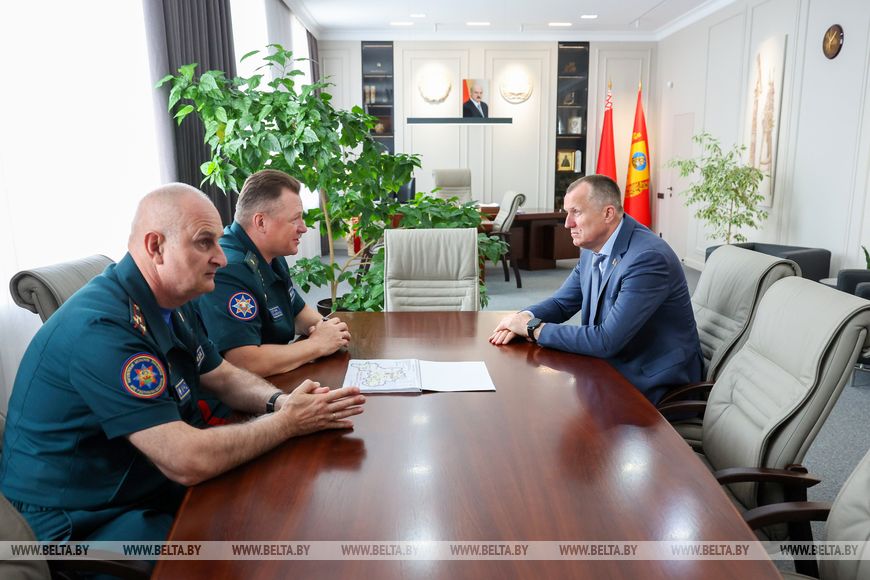 Основная цель визита министра - контроль за ходом выполнения поручения главы государства по обеспечению безопасности населения и восстановлению нормальных условий жизнедеятельности пострадавшего от стихии региона. Вадим Синявский уже встретился с руководителем Могилевской области Анатолием Исаченко, планируется встреча с курсантами и работниками МЧС, которые ликвидируют последствия грозового фронта, и посещение наиболее пострадавших мест.-0-