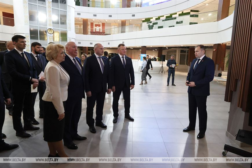 Перед посещением Образовательного центра безопасности жизнедеятельности Университета гражданской защиты МЧС министр по чрезвычайным ситуациям Беларуси Вадим Синявский и его российский коллега Александр Куренков посетили мемориальный комплекс "Хатынь", чтобы отдать дань памяти жертвам трагических событий в истории белорусского государства. После этого российская делегация посетила предприятие ООО "Пожснаб".
