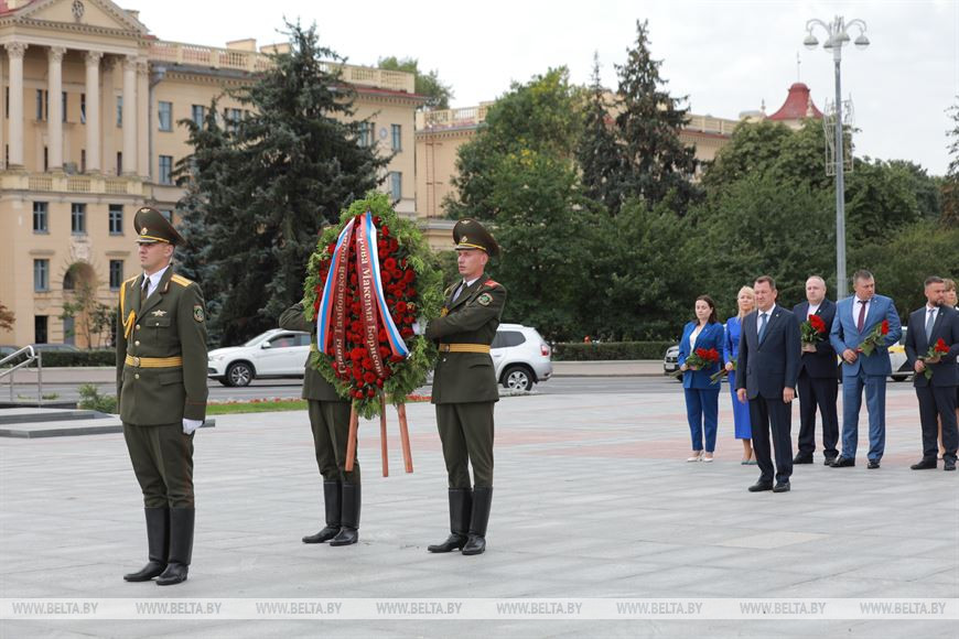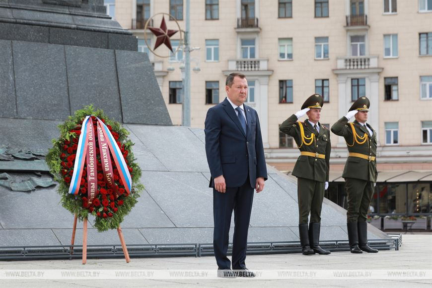 29 августа, Витебский район /Корр. БЕЛТА/. Глава Тамбовской области России Максим Егоров почтил память воинов, погибших в годы Великой Отечественной войны и возложил венок и цветы к Вечному огню у монумента Победы.-0-