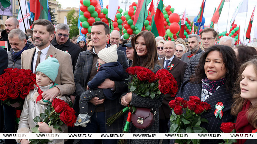 Ирина Акулович обратила внимание на важность семейных традиций в День Победы. "Вот Маргарита здесь стоит в военной пилотке. Она именная, пилотка многие десятилетия хранится у них в семье, а 9 Мая дети в ней на празднике. По-моему, это самое важное: они в пилотках, с бутоньерками, рядышком с нами, на площади Победы. И они понимают, куда пришли", - сказала гендиректор БЕЛТА.