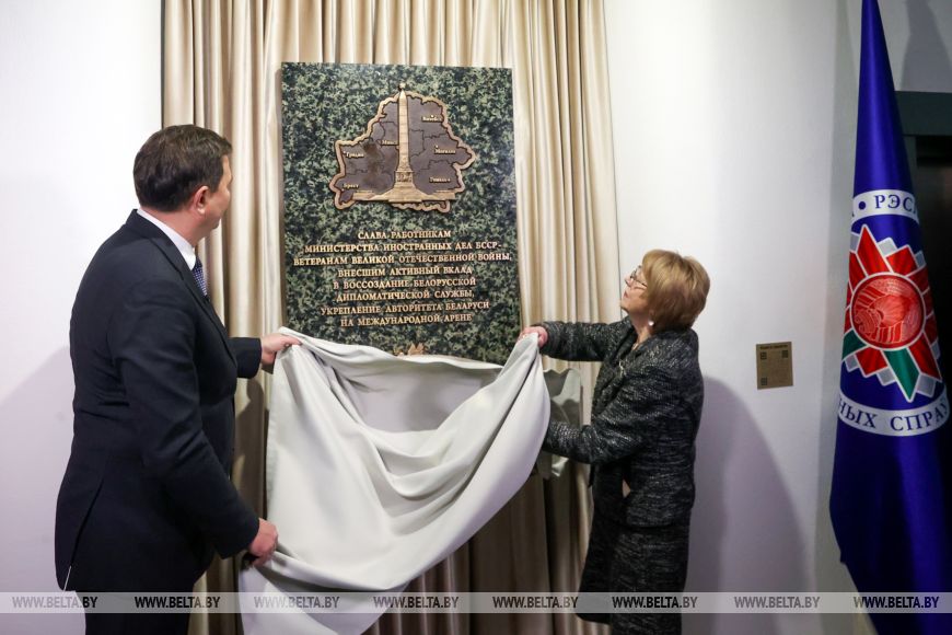 Мемориальная доска в память о ветеранах Великой Отечественной войны - сотрудниках МИД открылась в Минске.