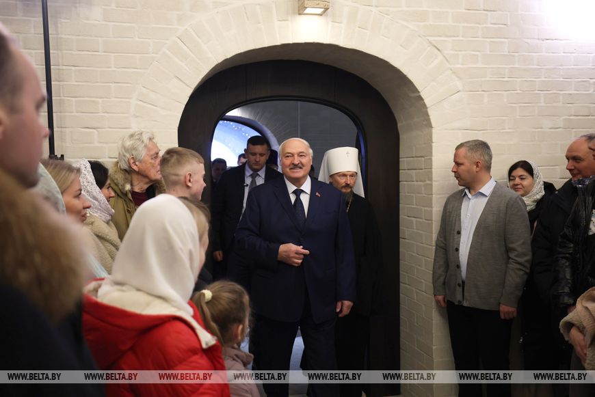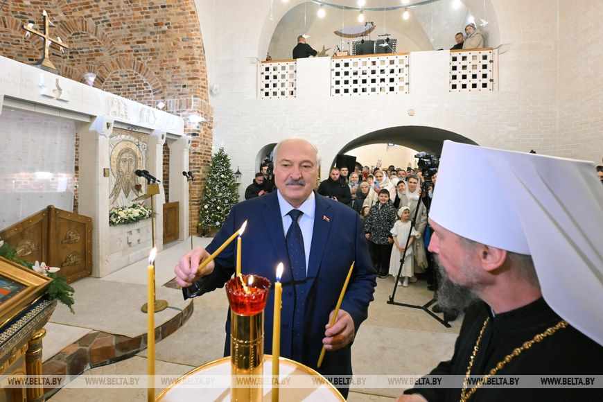 Президент Беларуси в Рождество зажег свечу в храме в честь иконы Божией Матери "Млекопитательница" в Минском районе.
