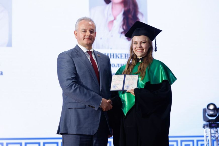 По сложившейся традиции лучших из лучших выпускников БГМУ приветствовал министр здравоохранения Александр Ходжаев.