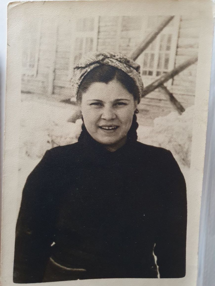 Росла она в многодетной семье в деревне Марково Курганской области. С начала войны работала наравне со взрослыми: обычно - поваром в колхозе, но во время уборочной возила на быках на элеватор пшеницу, рожь. Ни лошадей, ни техники в хозяйстве не осталось. За учебники дети садились только зимой, и то в перерывах между заготовкой и добычей дров.