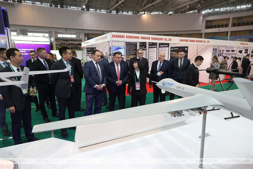Роман Головченко также уделил внимание стенду с китайскими разработками. В первую очередь он осмотрел беспилотные летательные аппараты, демонстрируемые представителями КНР. Премьер-министр также выразил заинтересованность в представленных образцах средств противовоздушной обороны.
