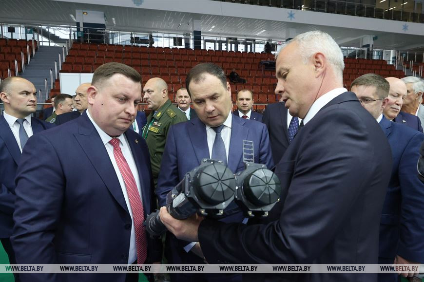 Роман Головченко во время посещения MILEX прежде всего оценил работу военно-промышленного комплекса Беларуси. Он ознакомился со стрелковым оружием, беспилотниками, броней и другими разработками белорусских ученых.