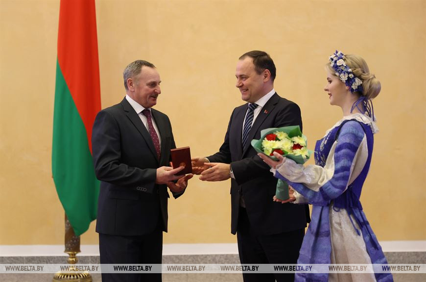 "Дорогие друзья, сегодня в ваших коллективах работают сотни и тысячи профессионалов своего дела. И то, что выбрали именно вас, - это знак высокого доверия и высокой оценки ваших заслуг. От имени правительства Беларуси позвольте выразить глубокую признательность и благодарность всем за проявленный подход, профессионализм и самоотдачу'", - отметил Роман Головченко.