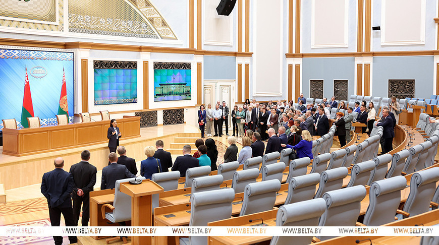С первых минут экскурсии ее участников приветствуют от имени главы государства. Кстати, именно по личному решению Александра Лукашенко несколько лет назад дворец открылся для посещений, и постоянно со всех регионов страны сюда приезжают коллективы, представляющие различные отрасли и ведомства.