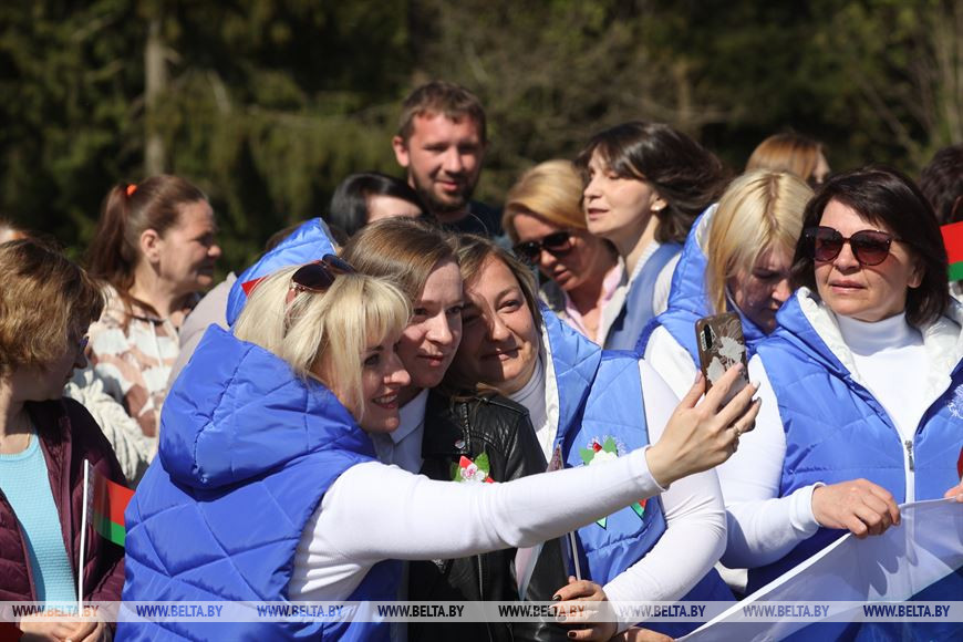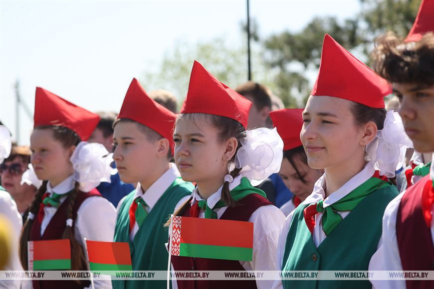 12 мая, Дзержинский район /Корр. БЕЛТА/. Государственный флаг установили в наивысшей точке Беларуси. Торжественное мероприятие в преддверии Дня Государственного флага, герба и гимна прошло 12 мая на горе Дзержинской, передает корреспондент БЕЛТА.