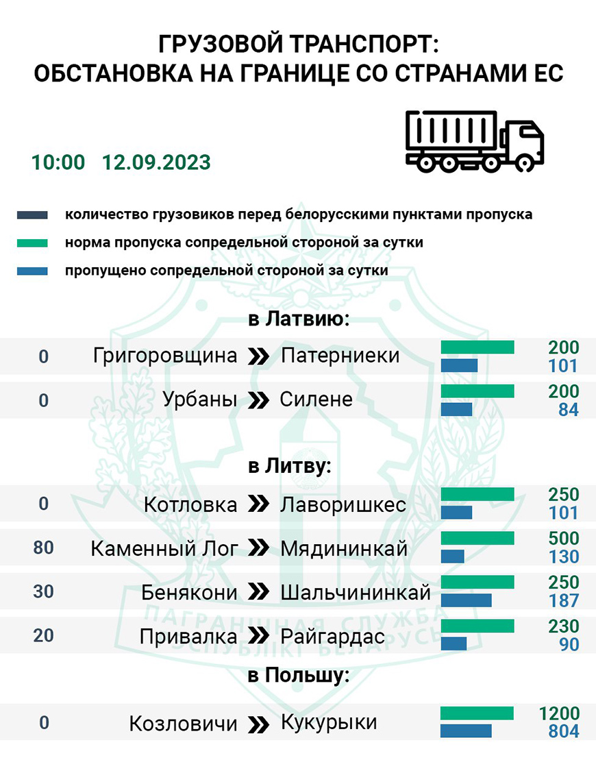 12 сентября, Минск /Корр. БЕЛТА/. Очереди фур сохраняются перед литовскими пунктами пропуска. Об этом БЕЛТА сообщили в Государственном пограничном комитете.