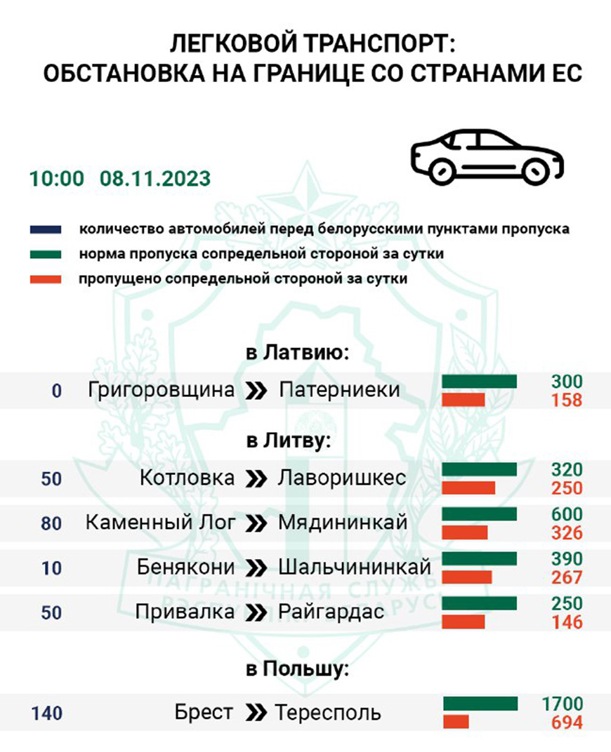 С пятницы сопредельные контрольные службы в латвийском пункте пропуска "Патерниеки" (сопредельный "Григоровщина") оформили 57% фур, в польском "Кукурыки" (сопредельный "Козловичи") - 63%.