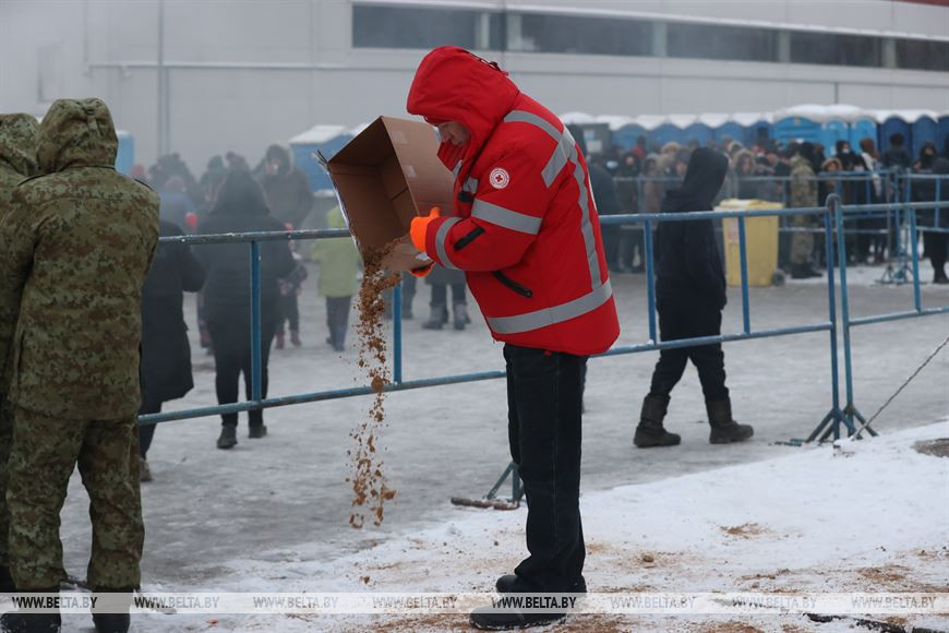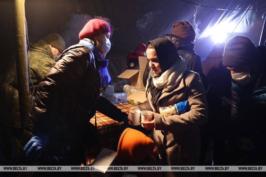 Ежедневно в лагере беженцев работают 20-25 волонтеров из различных организаций, в том числе Красного Креста, Белорусского союза женщин, БРСМ, студенты. "Здесь успели поработать волонтеры из всех районов Гродненской области. В лагере беженцев продолжают находиться 22 беременные женщины, а также несколько сотен детей. С учетом этого мы ответственно подходим к сбору гуманитарной помощи. Включаем в наборы детские присыпки, соски-пустышки и другие необходимые вещи", - добавила Ирина Степаненко. -0-