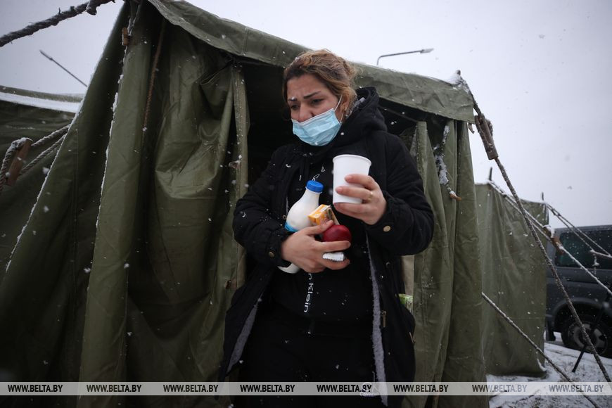 Сейчас эксперты ЕК знакомятся с тем, как живут беженцы в ТЛЦ. Заместитель председателя Гродненского облисполкома Виктор Пранюк рассказал экспертам, как организован быт, питание, медобслуживание беженцев. "Есть необходимый запас продуктов. Процесс питания проходит организованно. Потоки женщин, детей и взрослых разведены, - отметил он. - Круглосуточно дежурит две бригады скорой помощи. Ежедневно медики консультируют 40-70 человек. Сейчас в больницах находятся трое детей и двое взрослых беженцев. Выявлен один случай коронавируса".-0-