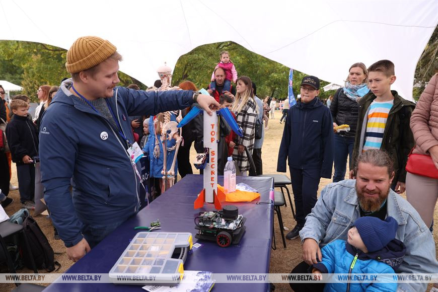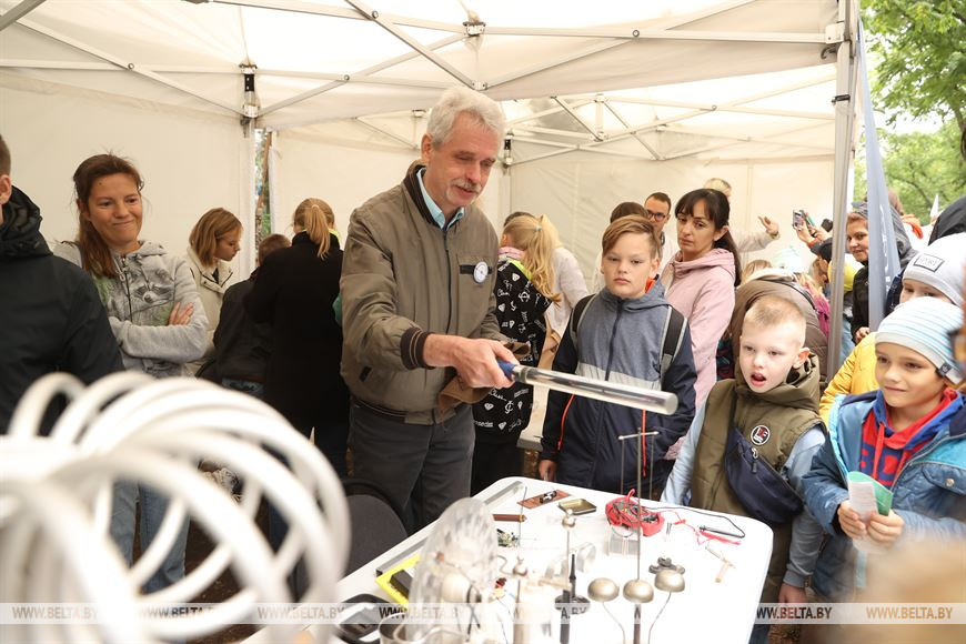 10 сентября, Минск /Корр. БЕЛТА/. Мы хотим, чтобы люди более основательно могли познакомиться с разработками ученых. Об этом на Фестивале науки в Ботаническом саду заявил председатель Президиума Национальной академии наук Владимир Гусаков, передает корреспондент БЕЛТА.