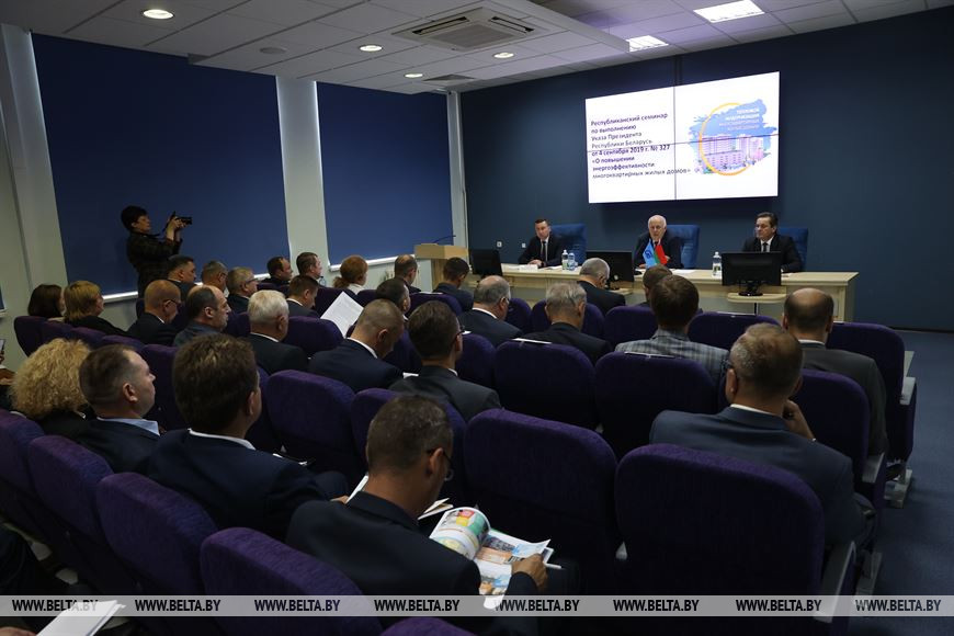Сегодня прошел республиканский семинар по вопросам выполнения указа Президента от 4 сентября 2019 года №327 "О повышении энергоэффективности многоквартирных жилых домов" под руководством заместителя премьер-министра Анатолия Сивака. Представители местных органов власти отчитались о реализации пунктов указа. Помимо этого, с докладами выступили представители научного сообщества, заместитель председателя Государственного комитета по стандартизации - директор Департамента по энергоэффективности Виталий Крецкий.-0-
