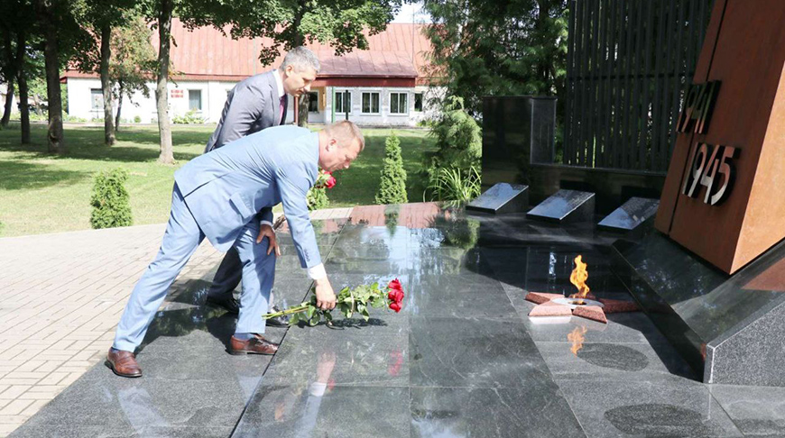 Сергей Хоменко вместе с председателем Ошмянского районного исполнительного комитета Владиславом Гершгориным возложил цветы к братской могиле в городском парке. Глава министерства подарил руководителю района научно-популярный сборник "Архивы. Ничего, кроме Правды", изданный Министерством юстиции совместно с Белорусским телеграфным агентством. В издание вошли новые выявленные архивные материалы, свидетельствующие о преступлениях нацистов и их пособников против мирного населения на оккупированной территории БССР в годы Великой Отечественной войны.