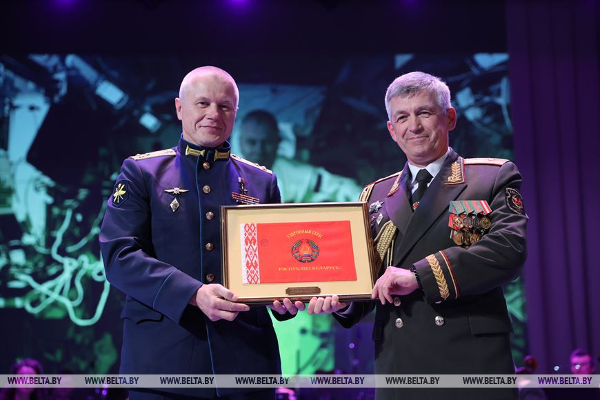 В Центральном доме офицеров состоялось торжественное собрание и концерт, посвященные 70-летию Военной академии Беларуси. В мероприятии приняли участие государственный секретарь Совета безопасности Александр Вольфович, министр обороны Виктор Хренин, начальник Военной академии Геннадий Лепешко, курсанты и знаменитые выпускники военного вуза. На праздничное мероприятие был приглашен летчик-космонавт, Герой России, полковник запаса ВВС России Олег Новицкий. В торжественной обстановке он вручил профессорско-преподавательскому составу уменьшенную копию знамени Военной академии, побывавшую на орбите.