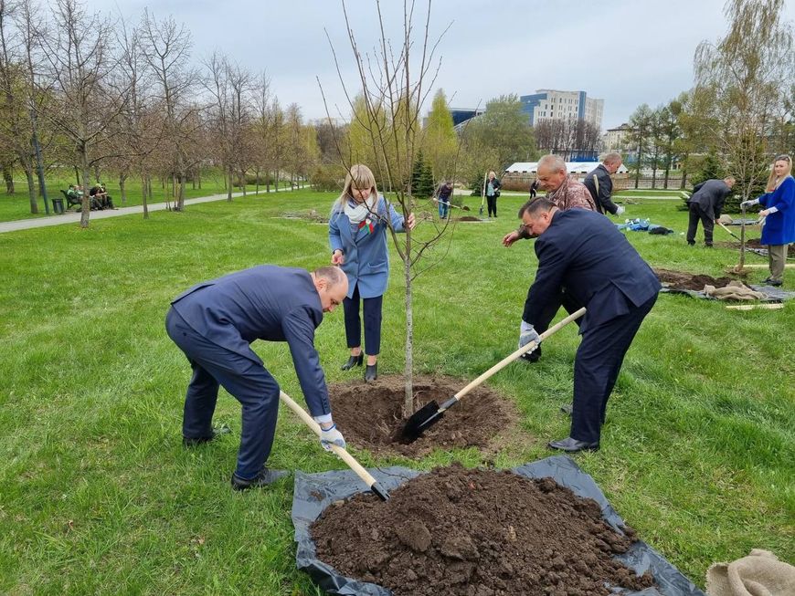 Глава ведомства завершил памятное мероприятие знаковым событием - в рамках экологической акции "Дерево героя" в парке Победы у стелы "Минск - город-герой" при участии Минского городского комитета природных ресурсов и охраны окружающей среды было высажено 15 саженцев липы. "Выбор посаженных деревьев неслучайный. Липа символизирует дружбу и сотрудничество. В средние века под липами проходили общие собрания и решались важные дела. Аромат цветущей липы создает вокруг себя ауру миролюбия и исцеляет душевные раны", - пояснили в ведомстве.-0-
