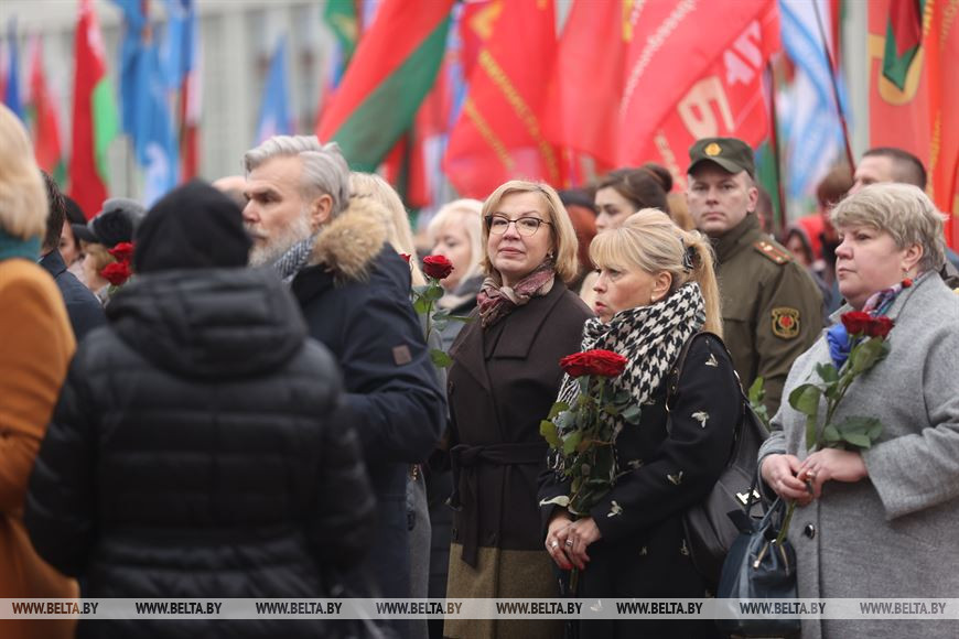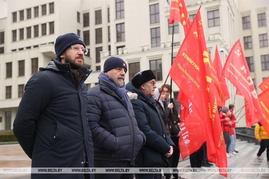 7 ноября, Минск /Корр. БЕЛТА/. Итальянский народ вместе с белорусами по одну сторону баррикад, заявил национальный секретарь партии "Социалистическая Родина" (Италия) Игор Камилли на торжественной церемонии возложения цветов к памятнику В.И.Ленину на площади Независимости в Минске в рамках празднования 105-й годовщины Октябрьской революции, передает корреспондент БЕЛТА.