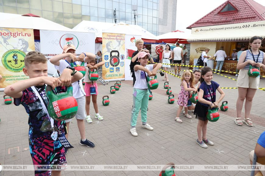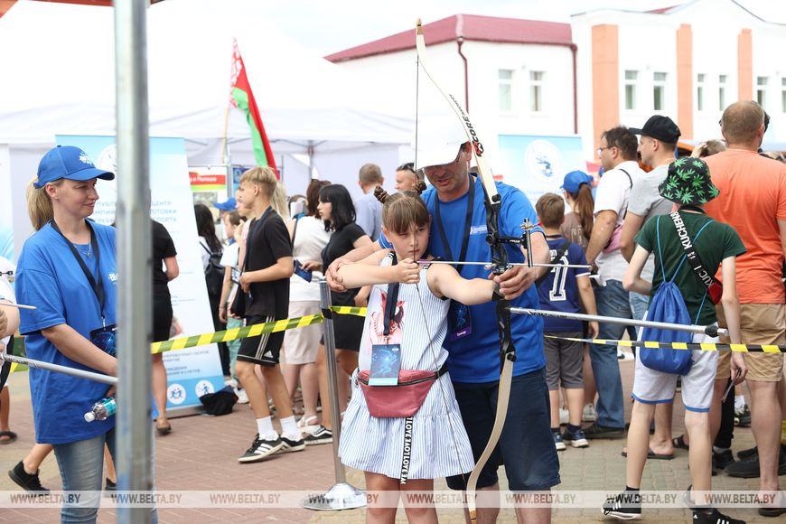 Работали выставка-продажа "Белорусские бренды", 30 площадок по видам спорта. Интерес вызвала площадка Белагропромбанка - гости приходили семьями. Юные посетители праздника на локации банка смогли принять участие в разнообразных спортивно-развлекательных активностях, в танцевальном флешмобе и, конечно, за участие получить подарки и призы от банка.