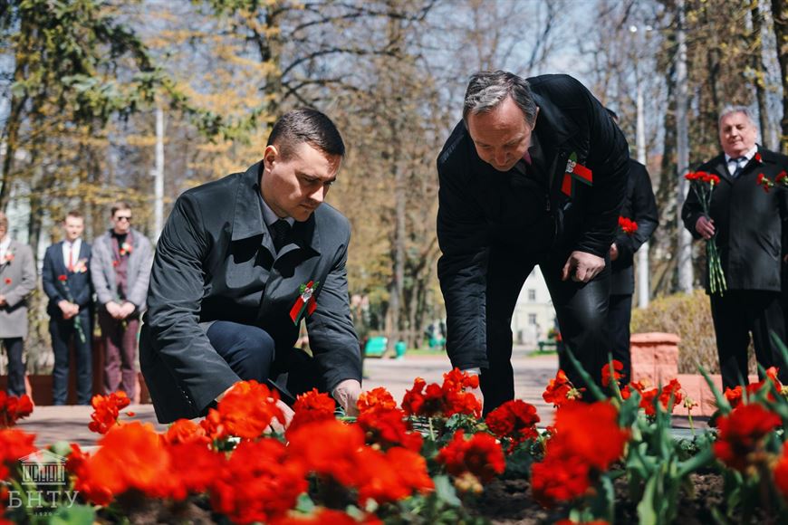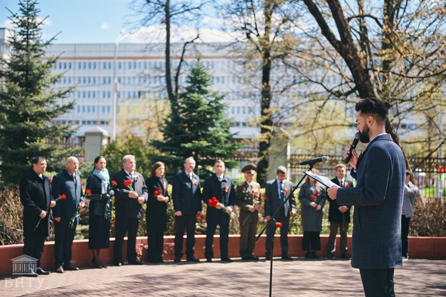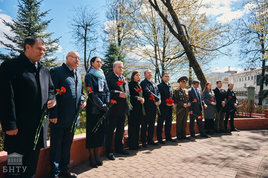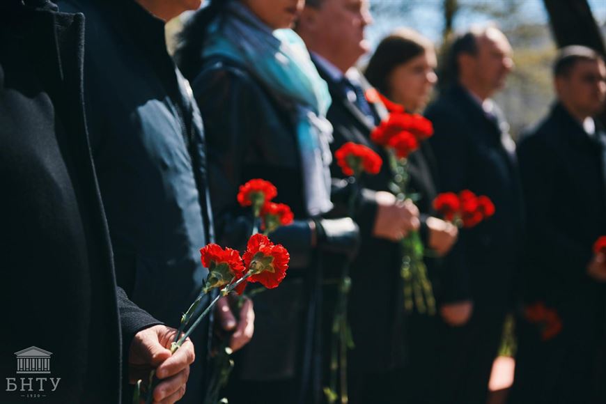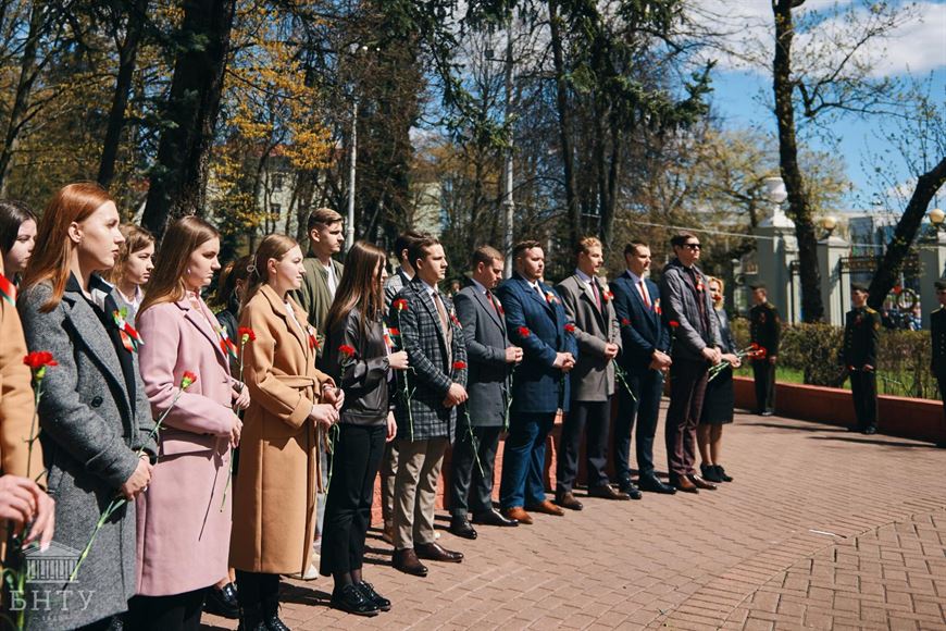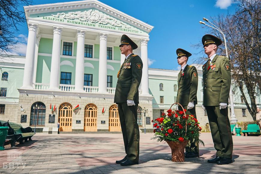 Во время торжественного мероприятия руководство Министерства образования, Белорусского национального технического университета, студенческая молодежь возложили цветы к монументу. "Для белорусского народа память о Великой Отечественной войне незыблема. Очень горестно, глядя на наших соседей, что они допускают не просто уничтожение памятников, они полностью зачеркивают весь подвиг советского народа, который был совершен в годы Великой Отечественной войны и благодаря которому сегодня мы живем под мирным небом. Уверен, что для нашего подрастающего поколения, для студенческой молодежи эти уроки не являются лишними, потому что каждый из нас должен понимать, что сегодня уходят те герои, ветераны, которые были участниками той страшной войны. Но пока мы помним их и память жива в наших сердцах, подвиг белорусского, советского народа будет жить", - отметил Андрей Иванец.