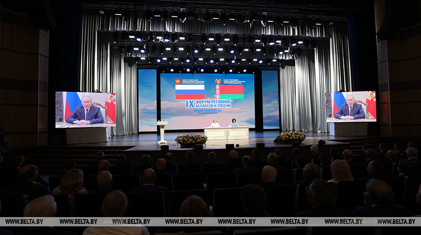 "Безумные и незаконные санкции Запада подтолкнули нас к ускоренным решениям в сфере транспорта и логистики, внедрению собственных платежных систем и расчетам в национальных валютах", - сказал Президент в своем видеообращении на пленарном заседании IX Форума регионов Беларуси и России.